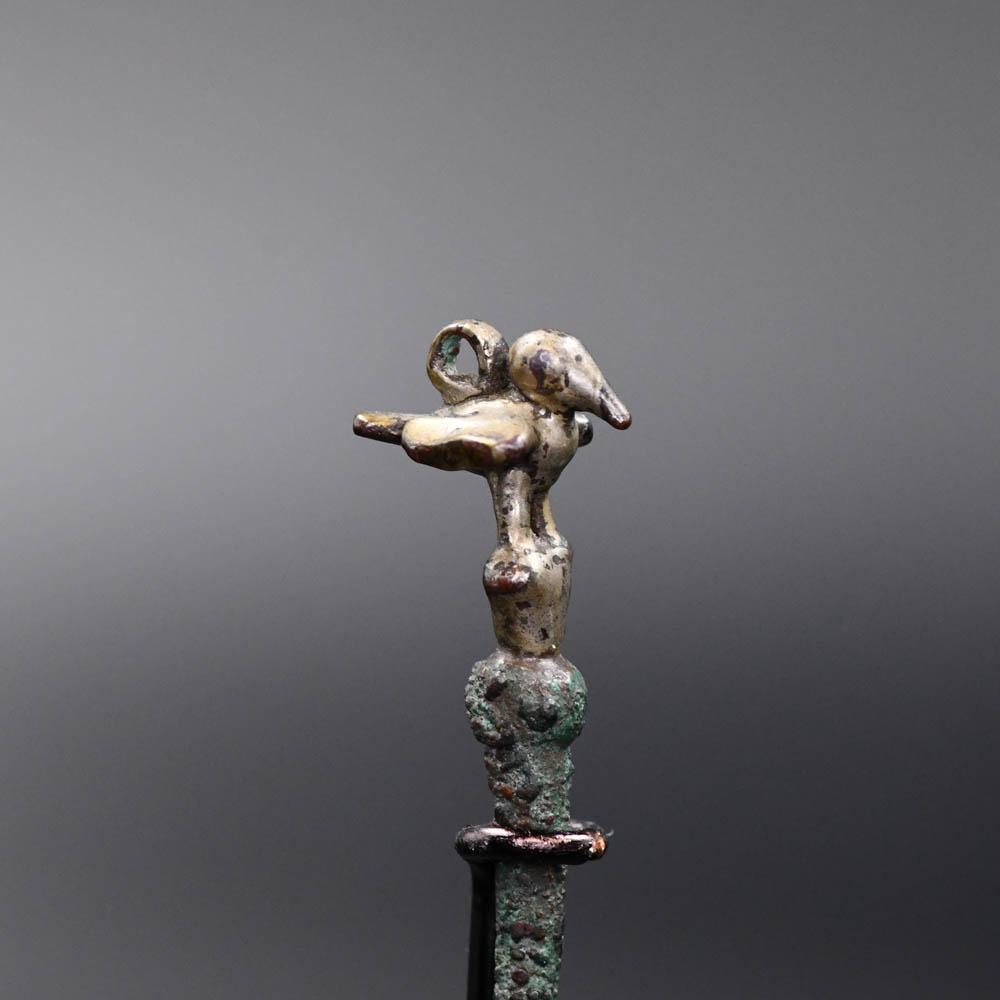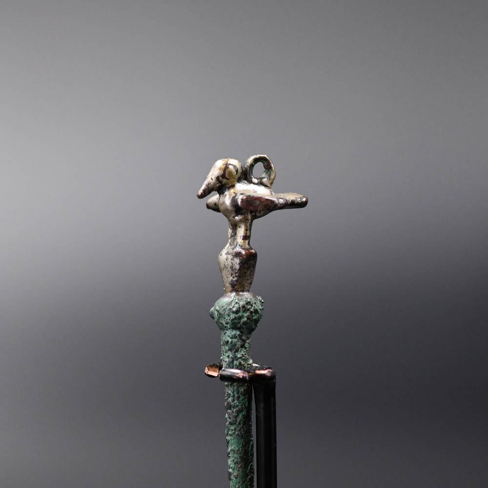 Ein silberner Vogel-Coca-Löffel aus Moche-Chimu, ca. 1100 - 1450 n. Chr.