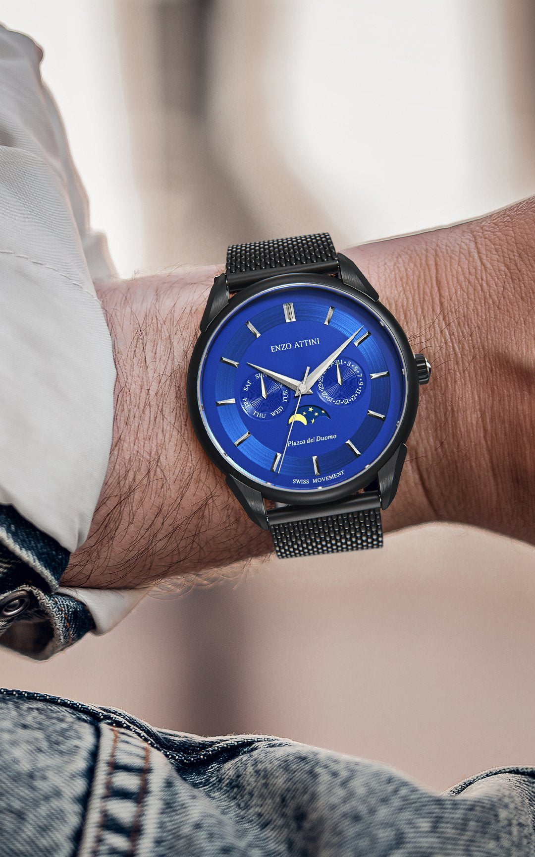 • ARMBÄNDER: Italienisches Lederarmband, Farbe Schwarz, Größe 20 mm x 18 mm, verstellbar, passt am besten für Handgelenke mit einem Umfang von 14–23 cm. Mesh-Armband, Farbe Schwarz, Edelstahl 316L, Einheitsgröße
