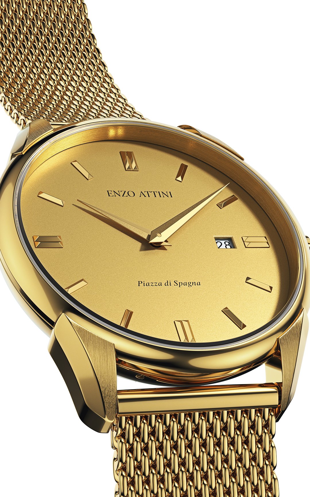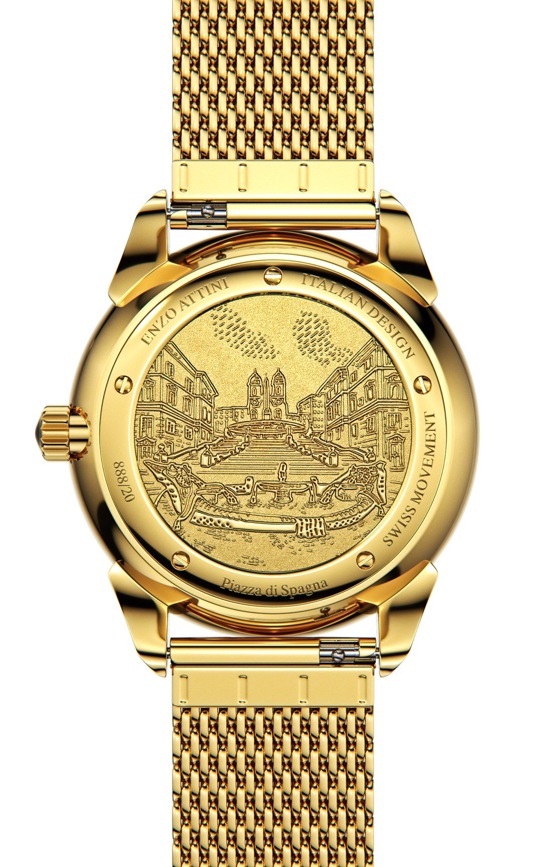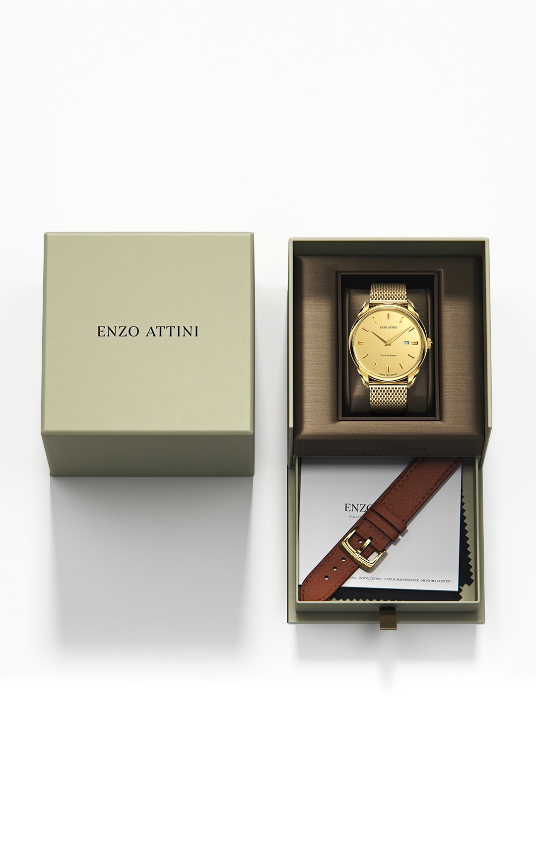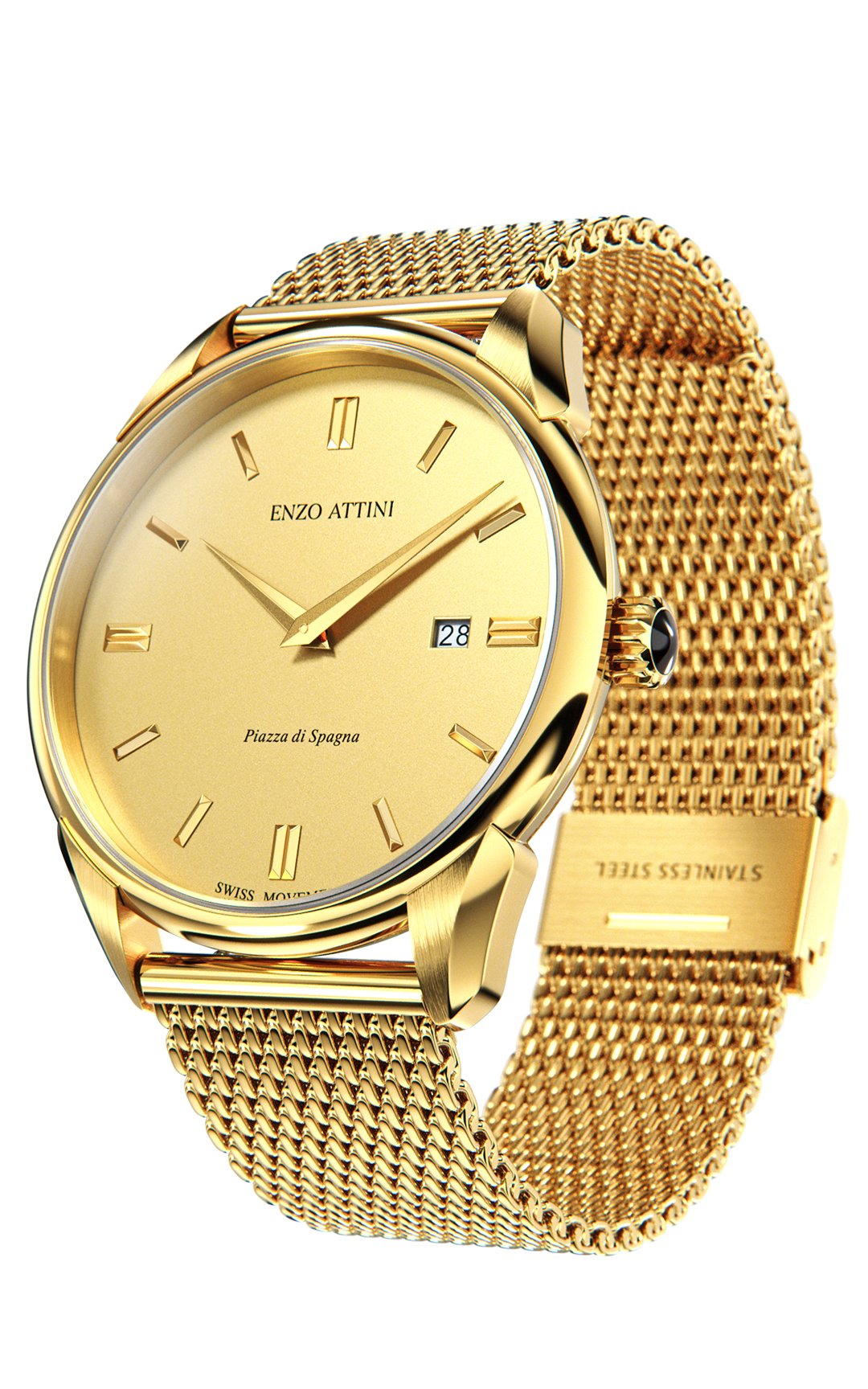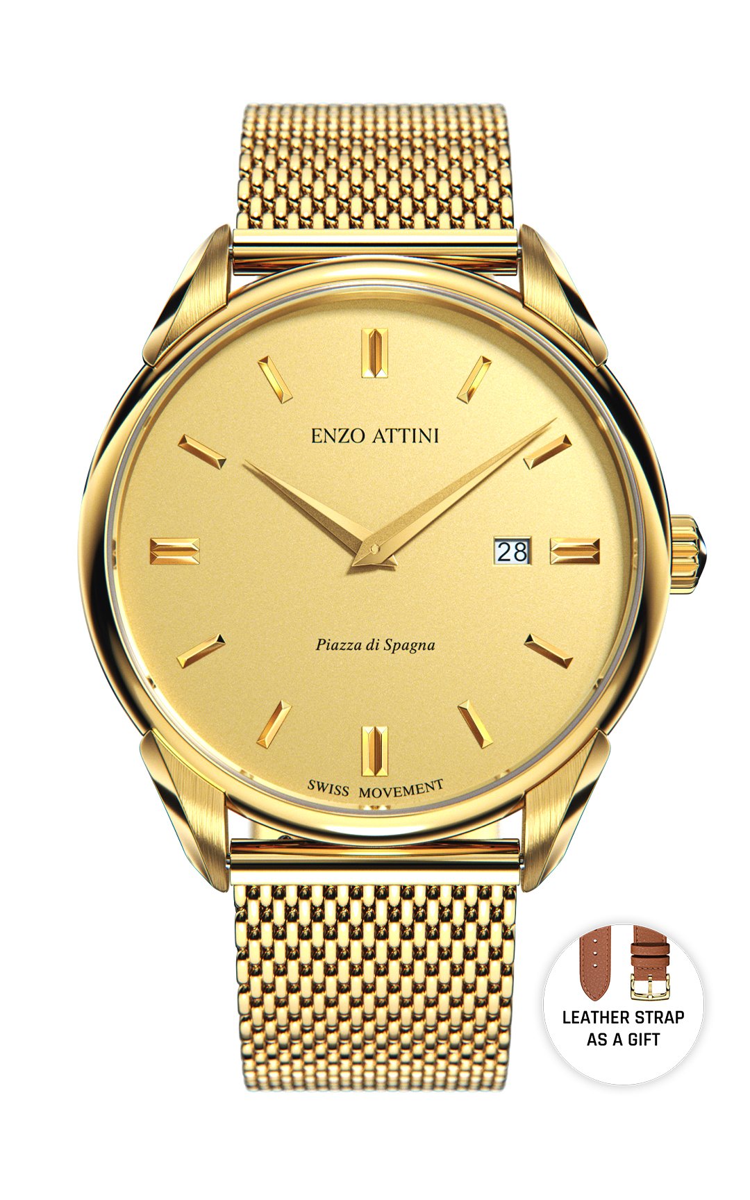 • GEHÄUSE: Goldfarben, Größe 40 mm x 8,9 mm, Edelstahlmaterial 316L