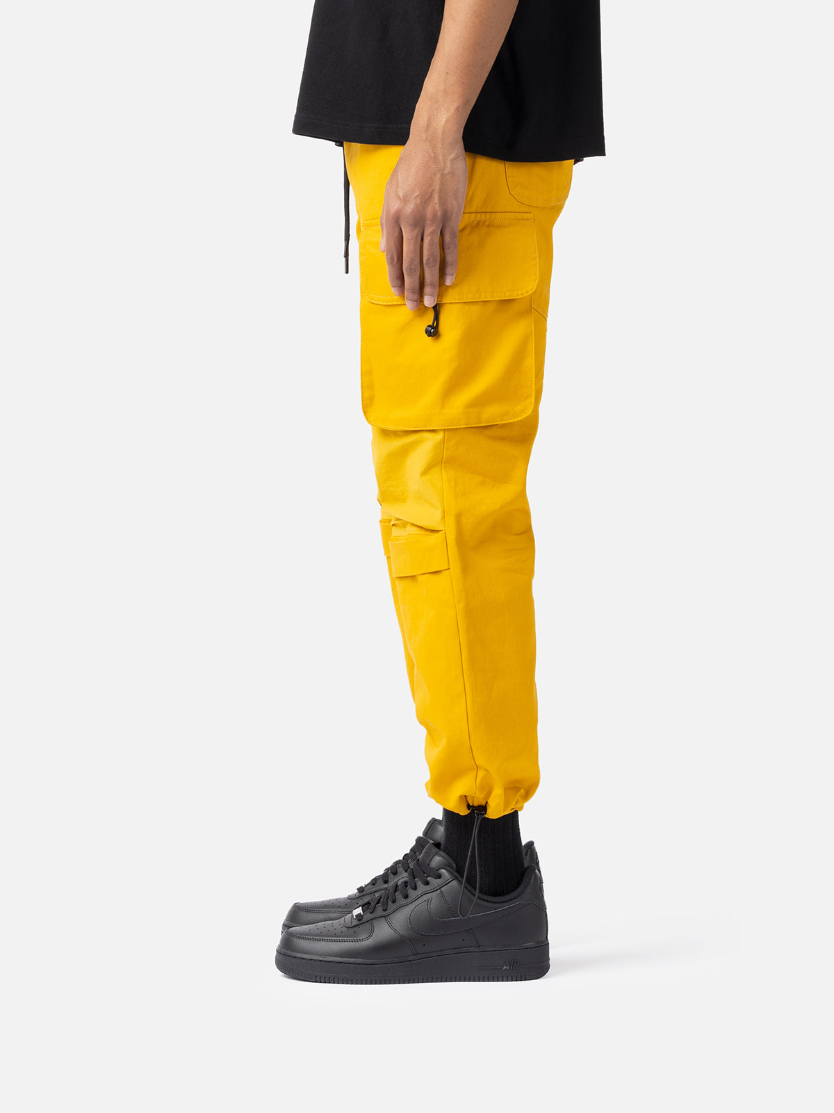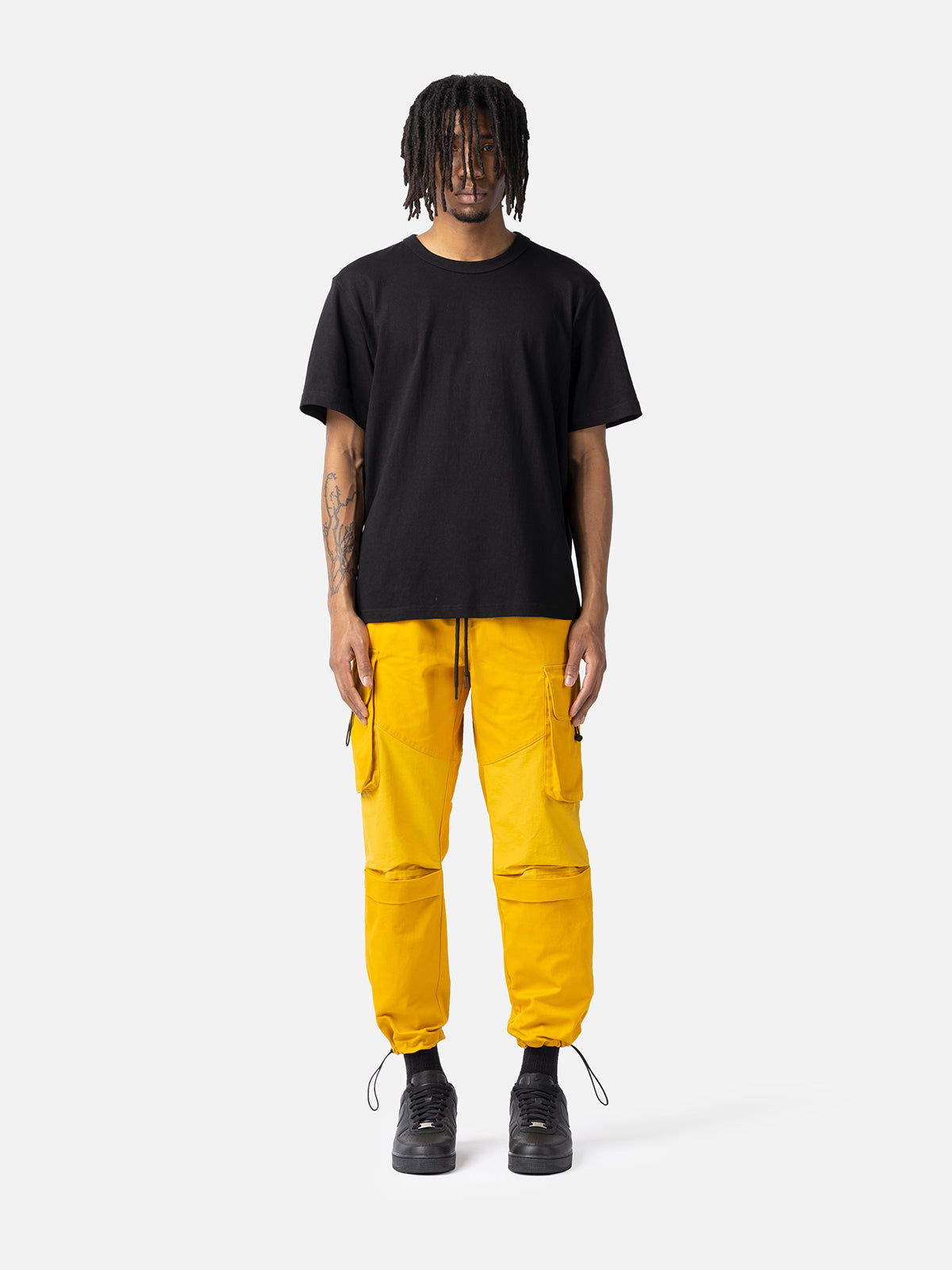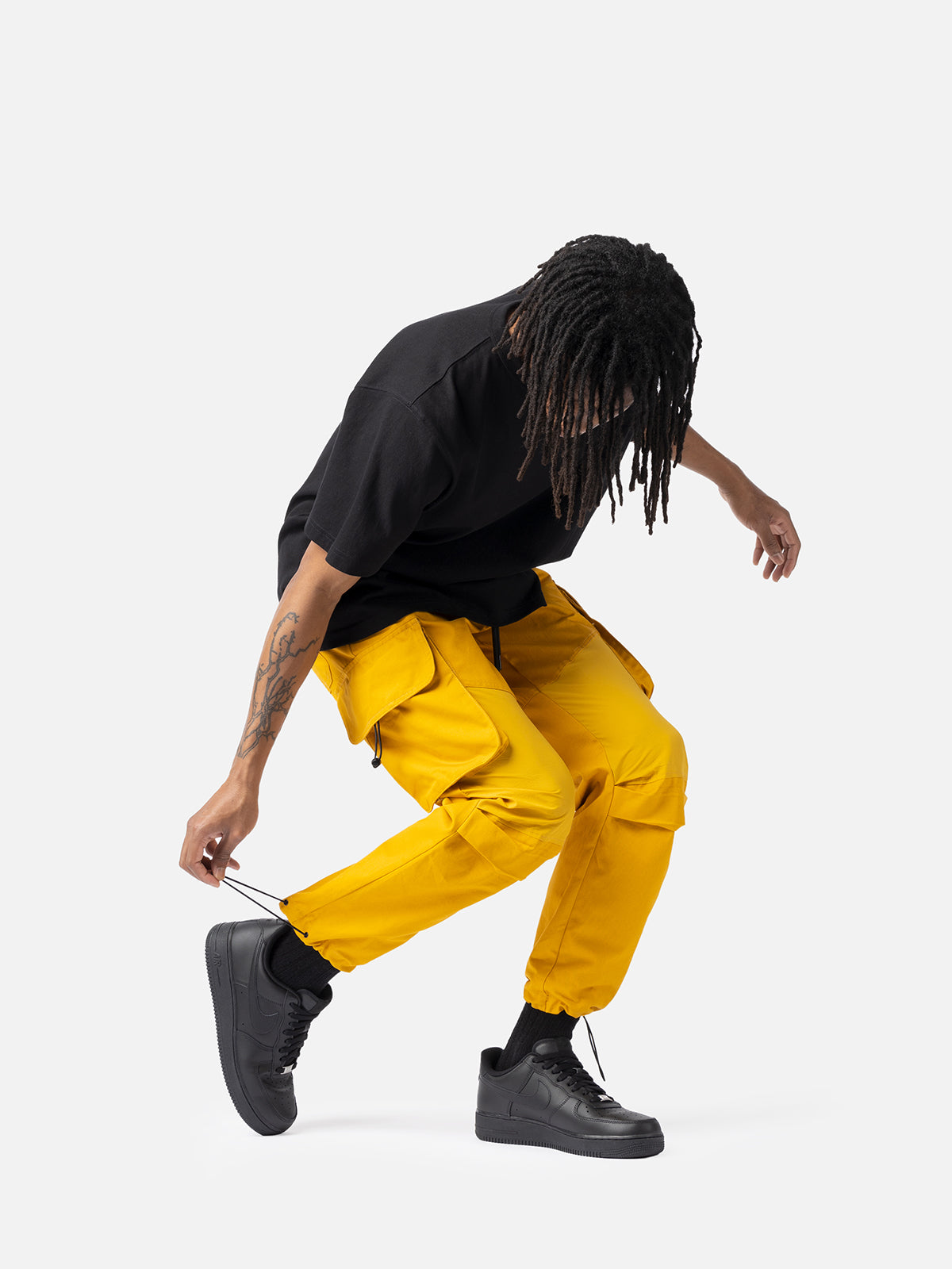 Die N32 Cargo ist aus Baumwolltwill und Nylon im Knöchelbereich gefertigt und verfügt über Pattentaschen mit Kordelzug an der Seitennaht sowie einen elastischen Bund mit Kordelzug. Abgerundet wird das Ganze durch elastische Kordeln und Cargotaschen an der Beinöffnung.