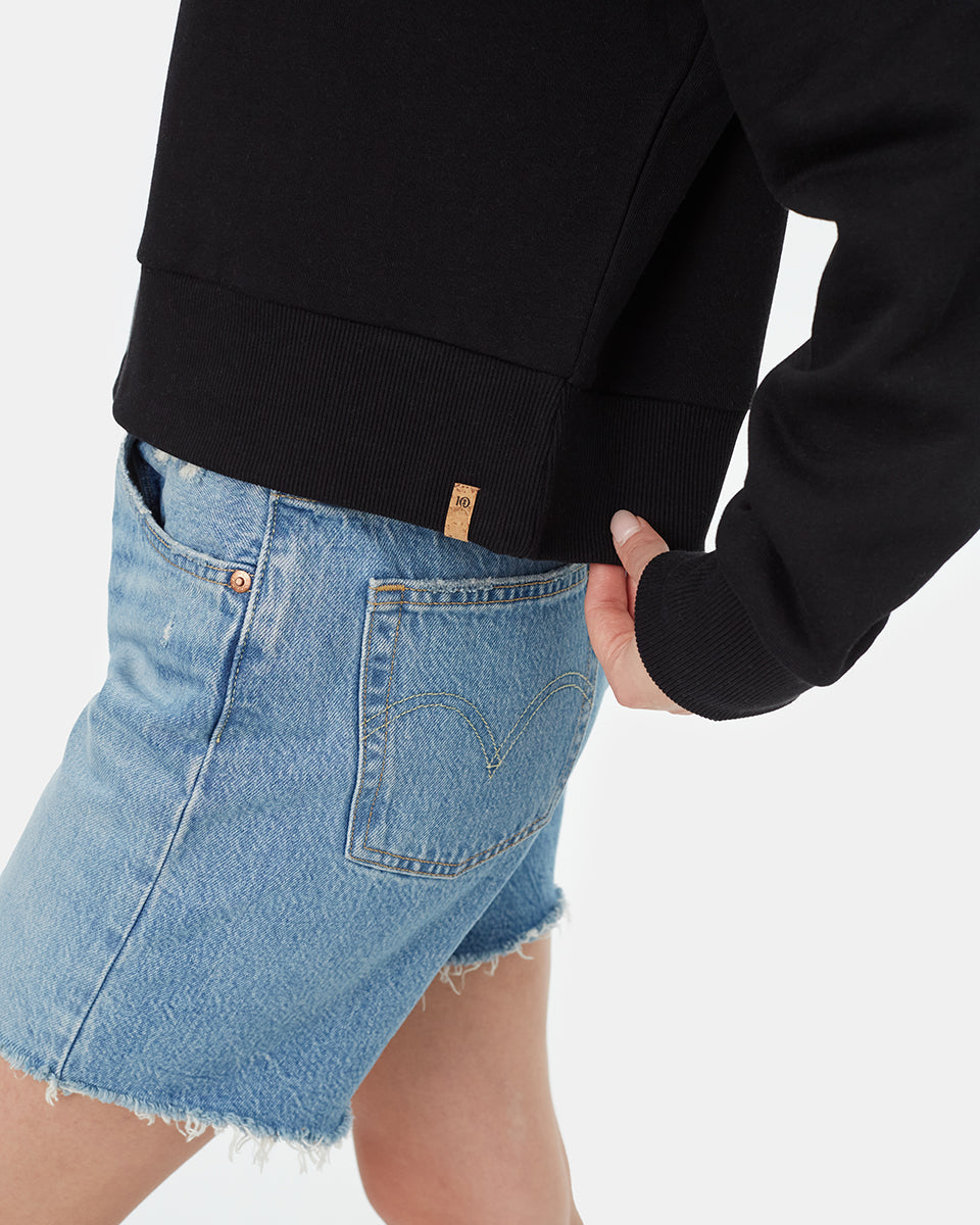 Mit seiner übergroßen, verkürzten Passform und dem gekerbten Ausschnitt verleiht dieser Pullover jedem normalen Sweatshirt das gewisse Extra. Außerdem entstehen bei seiner Herstellung deutlich weniger Abwasser und Emissionen.