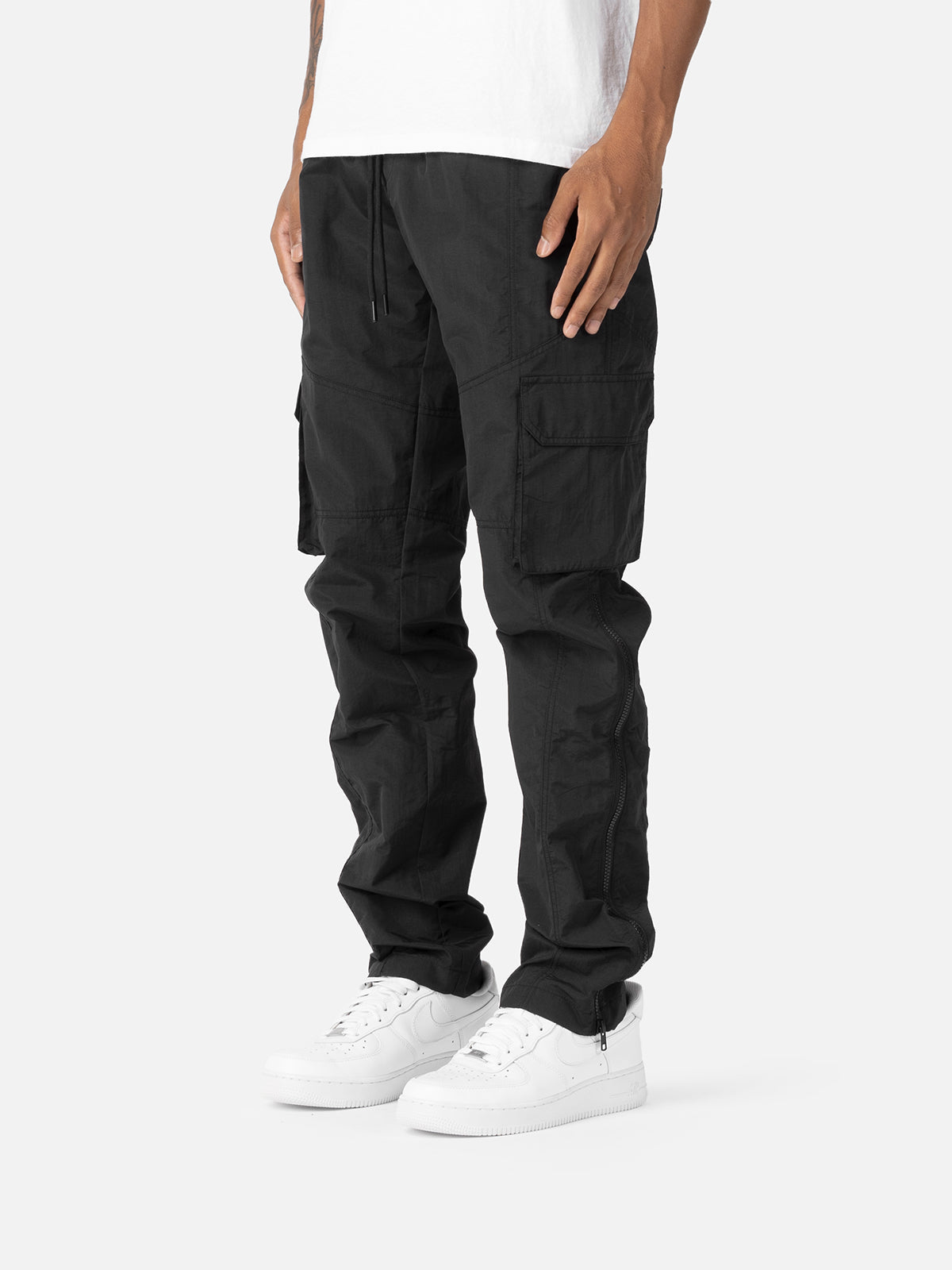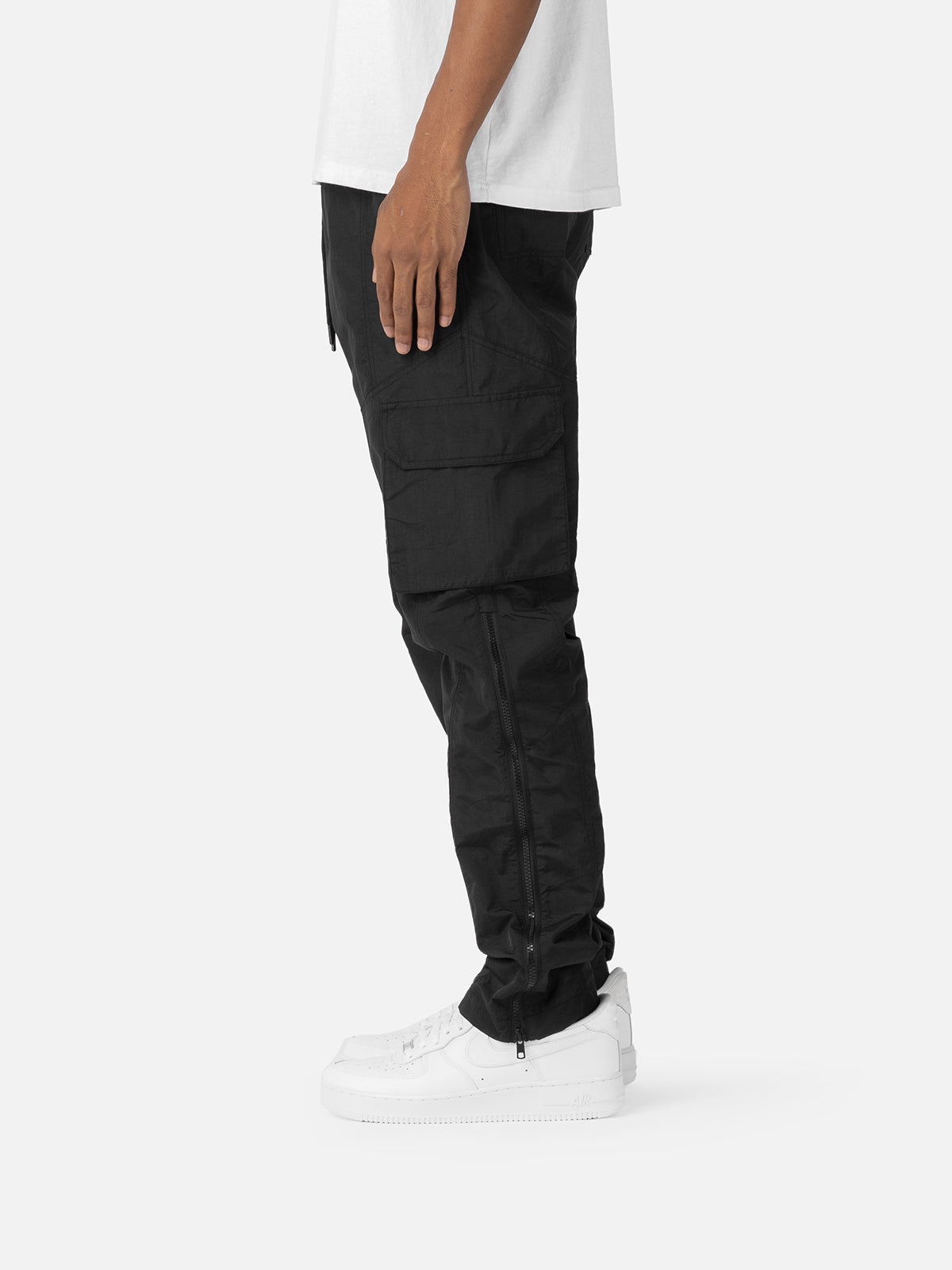 Der aus leichtem Nylon gefertigte X11 Cargo verfügt über eine Pattentasche an der Seitennaht, eine Reißverschlusstasche als seitliche Einschubtasche und einen Reißverschluss von der Cargotasche zu den Beinöffnungen.