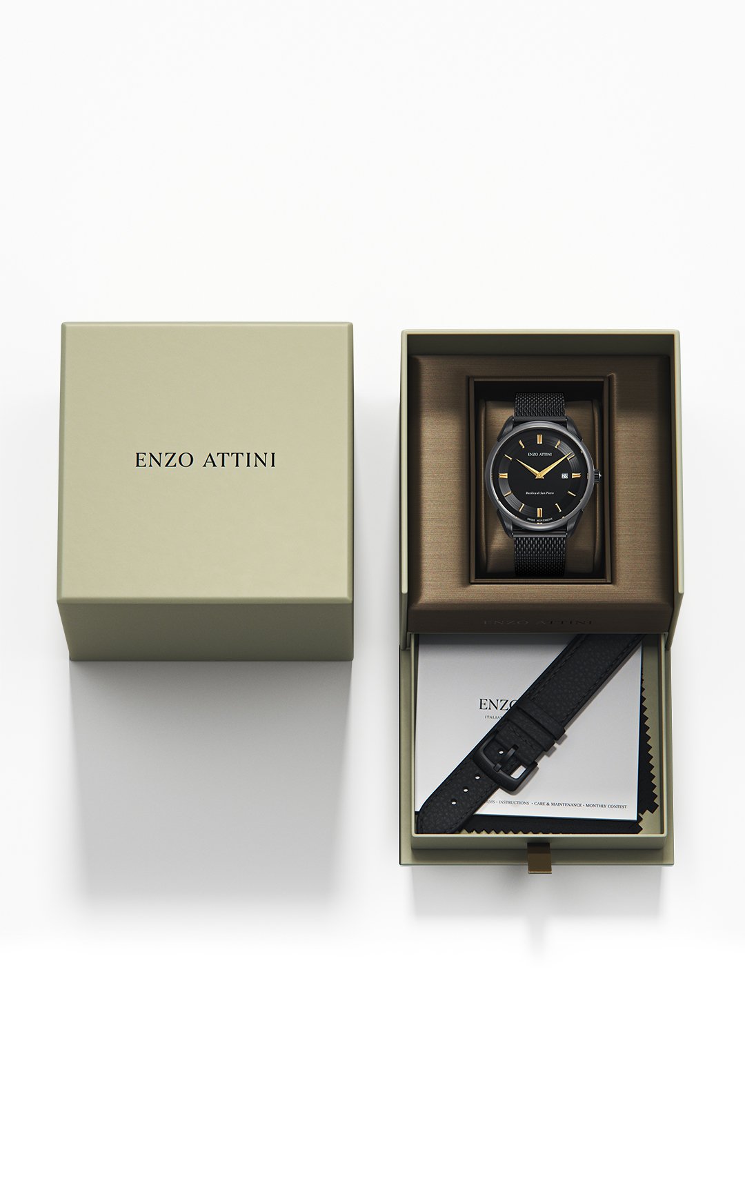 • ARMBÄNDER: Netzarmband, Farbe schwarz, Edelstahl 316L, Einheitsgröße. Italienisches Lederarmband, Farbe Schwarz, Größe 20 mm x 18 mm, verstellbar, passt am besten für Handgelenke mit einem Umfang von 14–23 cm.
