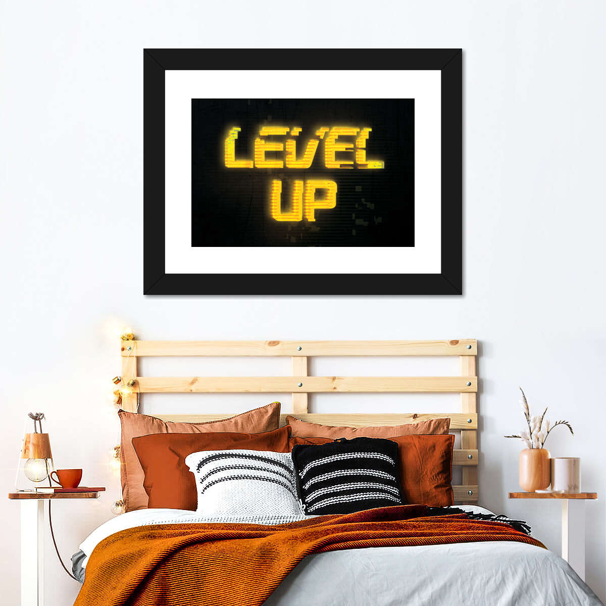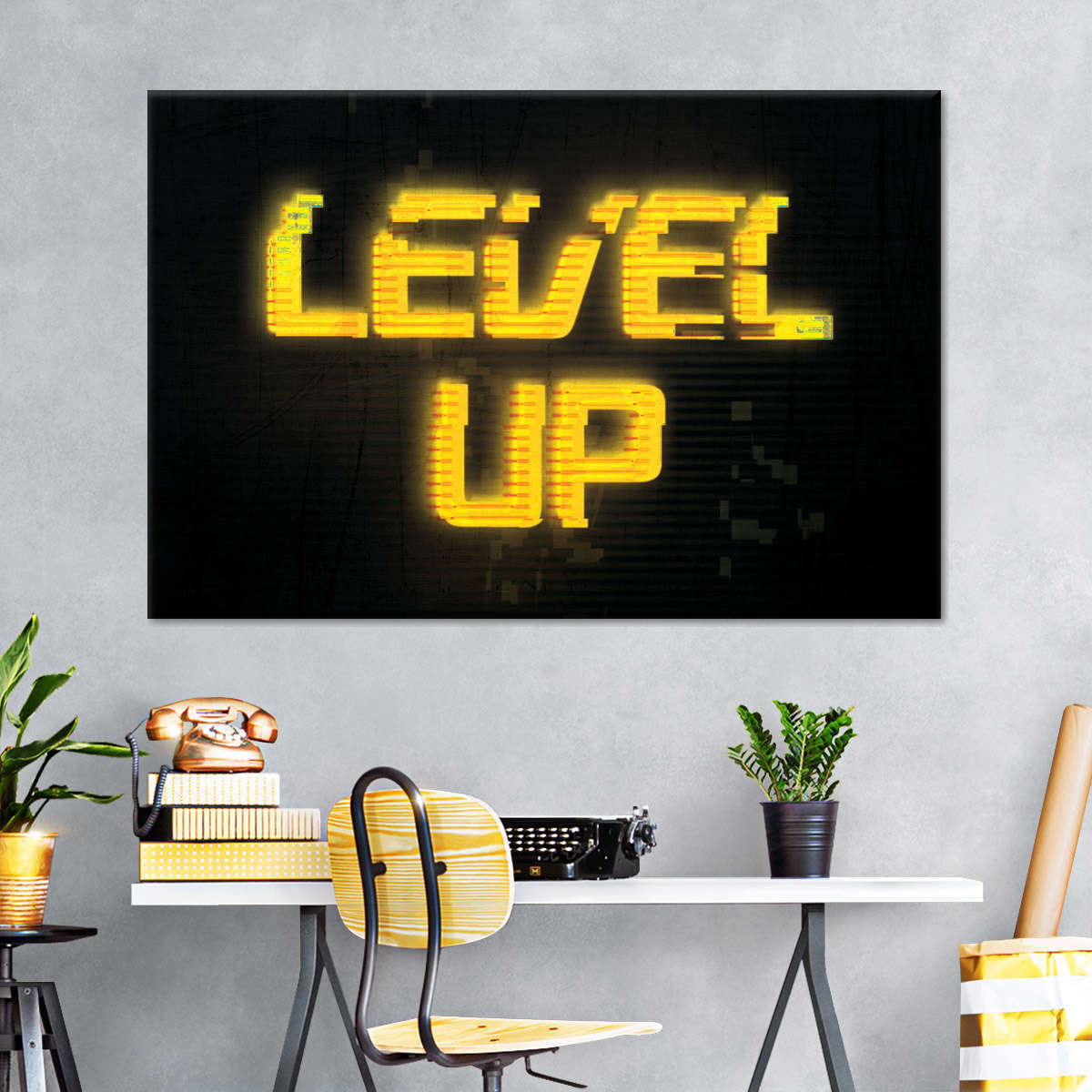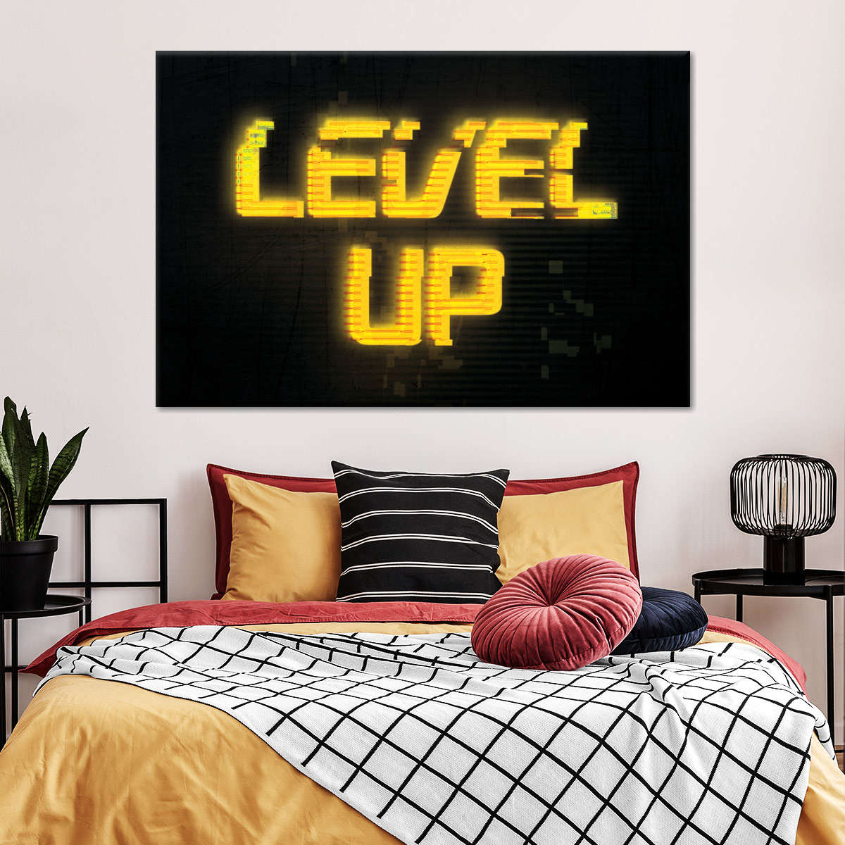 Level -Up -Pannen -Wandkunst ist eine schöne Ergänzung zu jedem Dekor -Stil. Bringen Sie diesen atemberaubenden Leinwanddruck in Ihr Zuhause, um Ihre Wände leicht zu erfrischen und Ihr Dekor zu erhöhen.