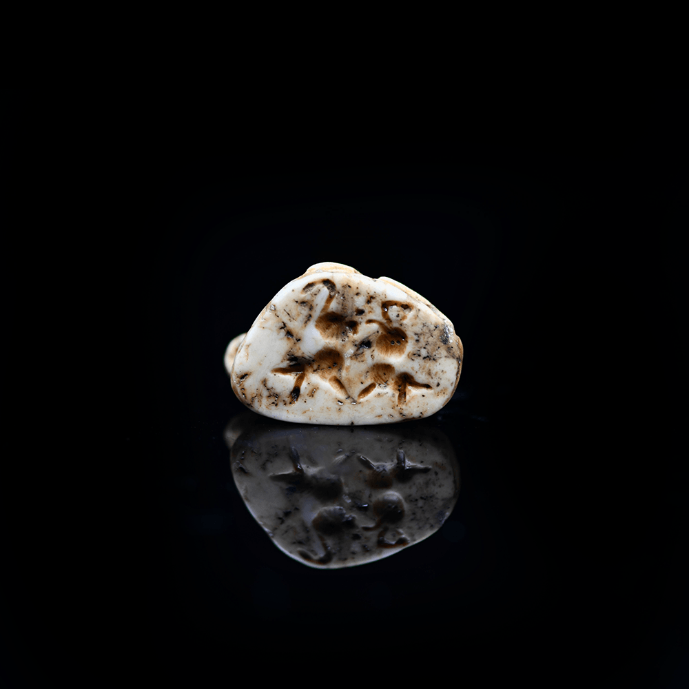 Ein sumerisches Marmor-Stierstempelsiegel, späte Uruk/Jemdet-Nasr-Zeit, ca. 3100–2900 v. Chr.