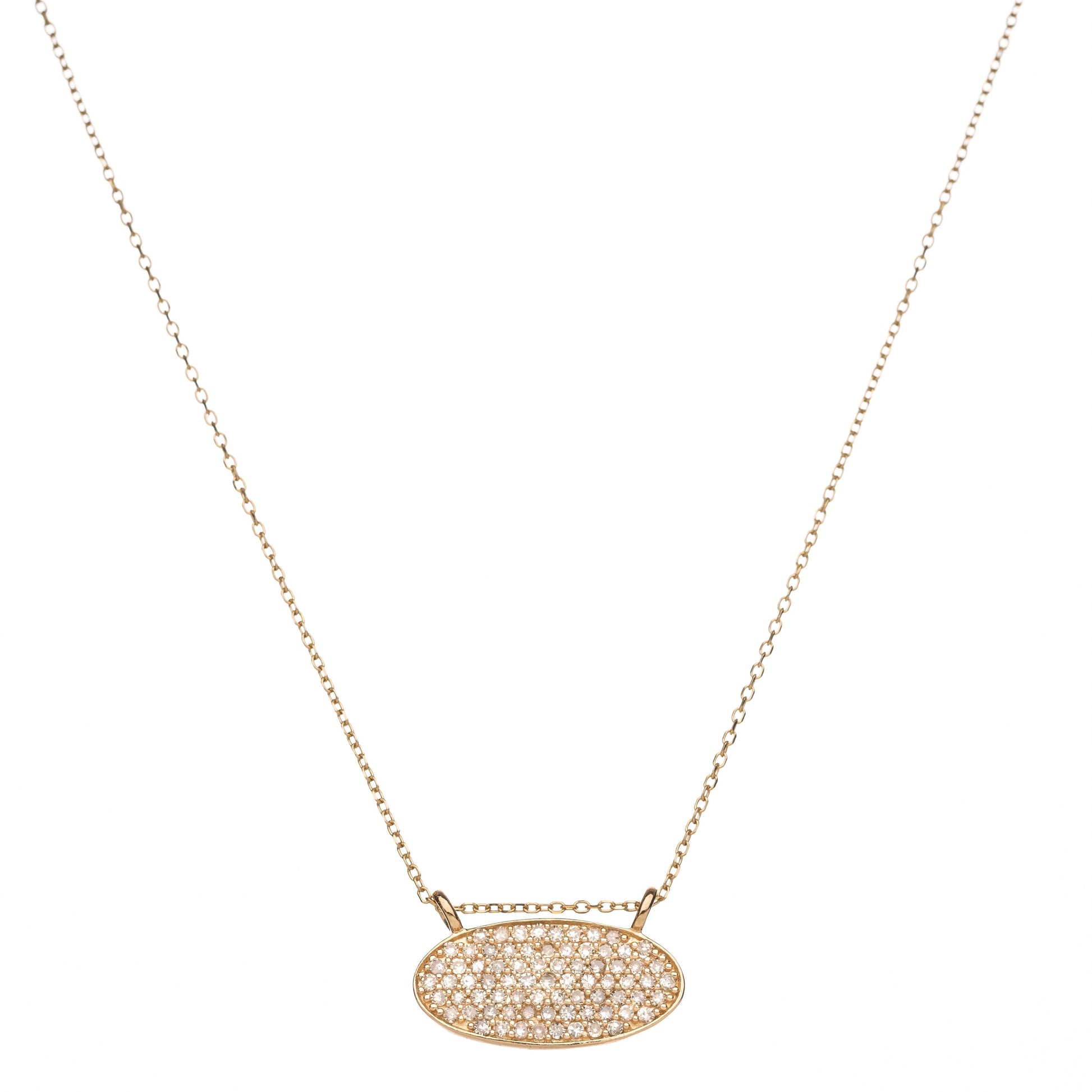 In diesen minimalistischen ovalen Anhänger sind 92 Champagner-Diamanten eingefasst. Ein wunderschönes Statement-Stück, das ständig funkelt und glänzt.