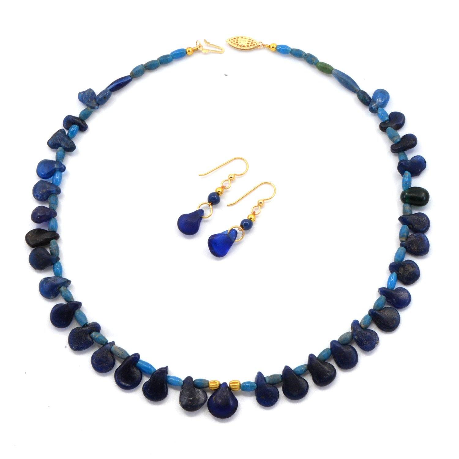 Eine römische Halskette mit Ohrringen aus blauem Glas, Römische Kaiserzeit, ca. 1. - 2. Jahrhundert n. Chr.