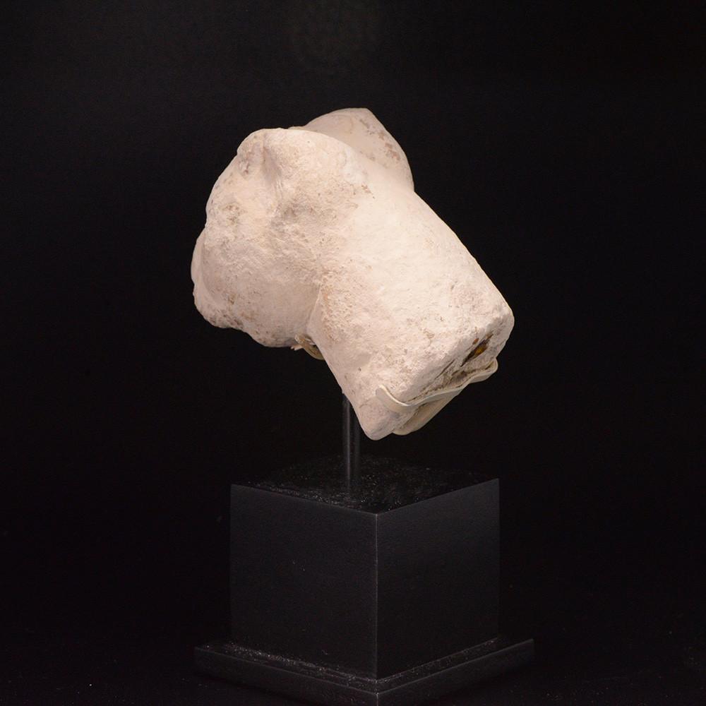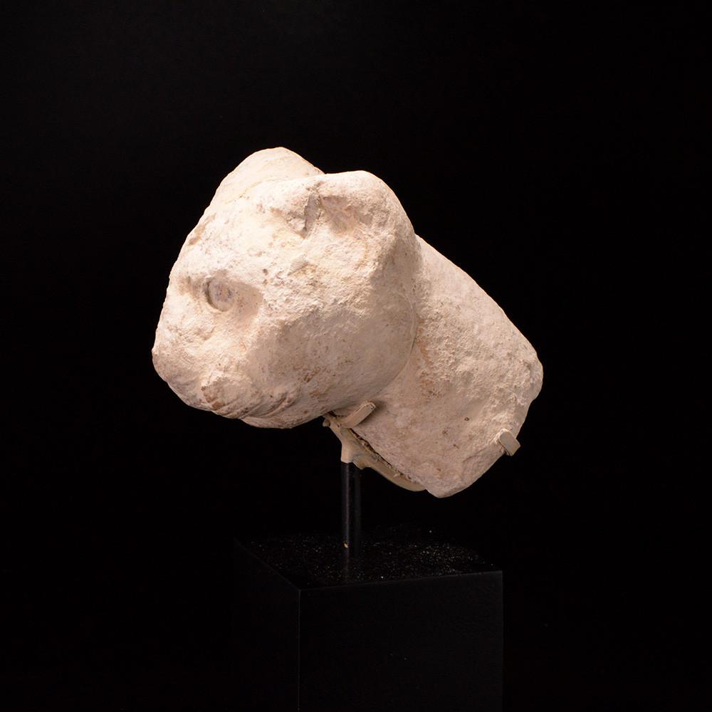 Ein ägyptischer Kalksteinkopf einer Katze, spätptolemäische Zeit, ca. 664 - 332 v. Chr.