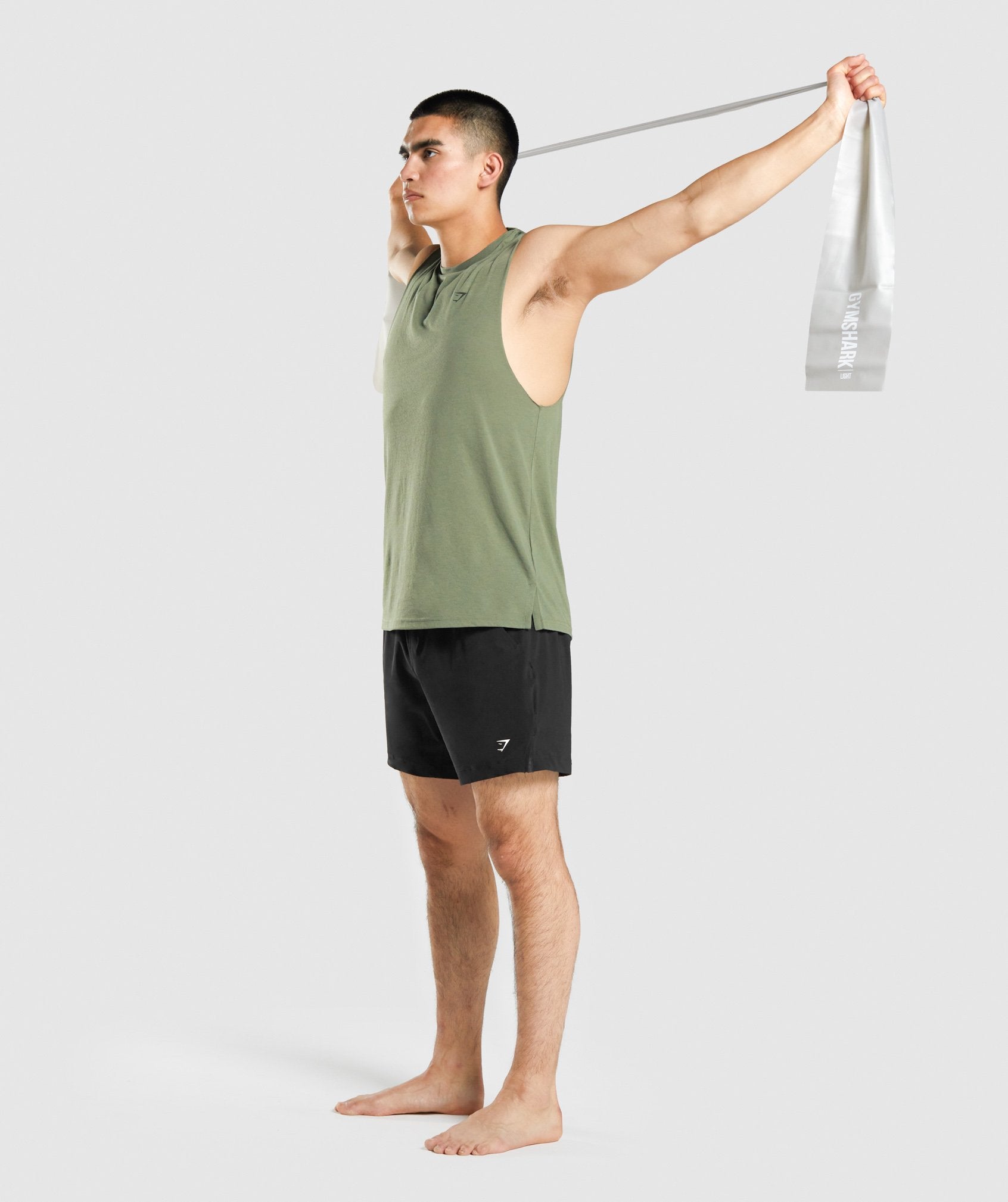 Strecken Sie Ihre Grenzen im Studio -Tank. Es ist so leicht und dehnbar, dass Ihre Mobilität Ihnen nur dafür danken wird. Perfekt für jedes Element des Mobilitätstrainings, wir haben diese Weste mit einem leichten Polyester-Basismaterial gebaut und in langen Tropfenarmlöchern hinzugefügt, damit Sie jede Position erreichen und im Studio posieren können.