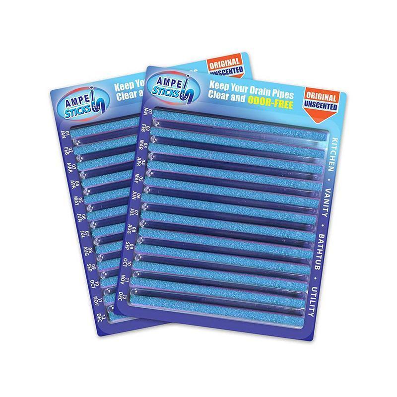 - SMART CLEANING: Ampe Sticks cleaner, deodorizer and clog preventer are a powerful, safe and efficient way to eliminate embarrassing, foul odors from drains and helps to prevent clog backups in sinks and showers. Its non-toxic formula is gentle and safe on septic tanks and is available in multiple scents and count varieties.