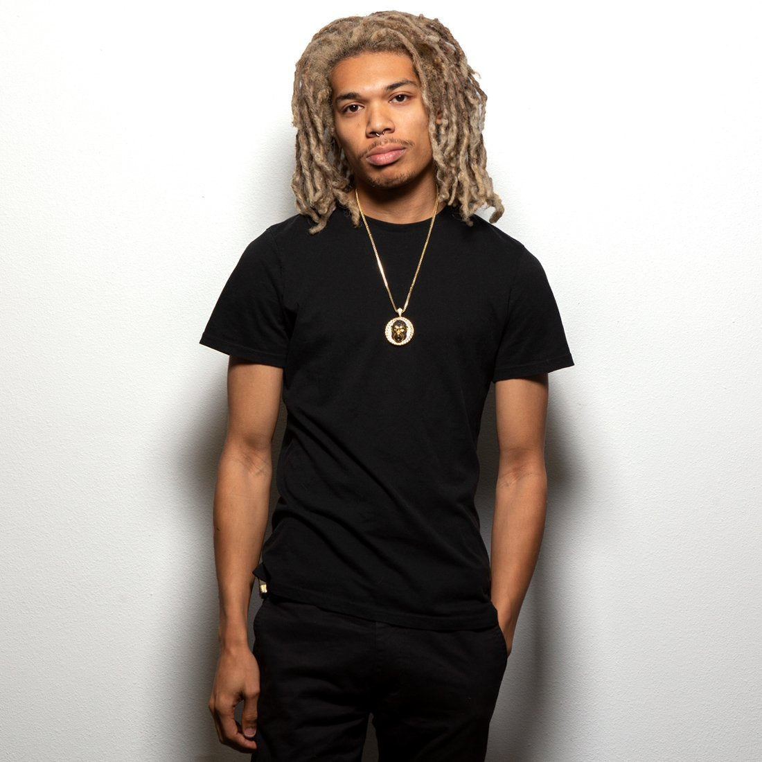 The menacing look on the gorilla's face is enough for a hard look with the new gorilla medallion. Each medallion is iced with clear and onyx colored VVS Diamond Simulates. Greek key design and more simulates border the medallion for a sleek finish.