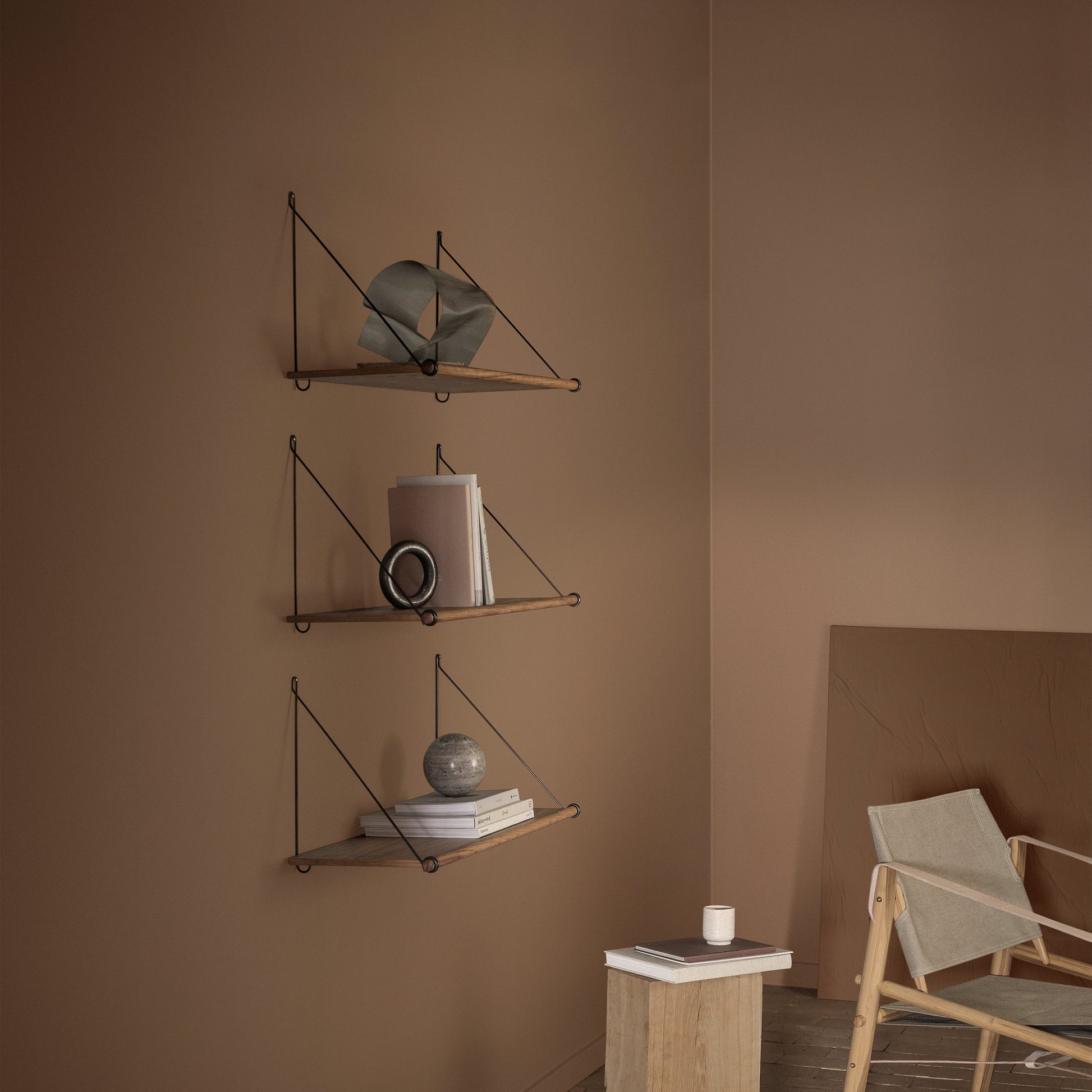 With its stunning details, the Loop Shelf in smoked oak embodies what true Nordic design looks like. The depth and strength of the dark smoked oak together with the light loop-shaped brass brackets brings warmth and elegance to your home decor.