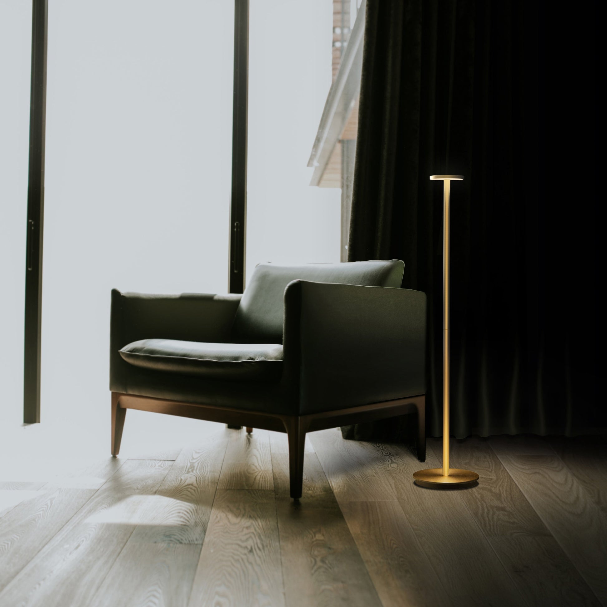 Luci is a fully rechargeable portable luminaire that allows you to take your ambiance wherever you go indoors and out. Defined by its simplicity of form and high tactile feel, Luci features an all-machined aluminum body that's premium to the touch and brings elegance to any intimate moment or social gathering. Representing the future of illumination, Luci features state of the art Dim to Warm light technology with 3 preset light level plus full range dimming which are activated via optical switch atop the shade. Luci also boasts a best-in-class battery life to provide many hours of untethered illumination between charges. Luci is offered in three anodized machine trace finishes in Silver, Brass, and Black and textured Matte White.