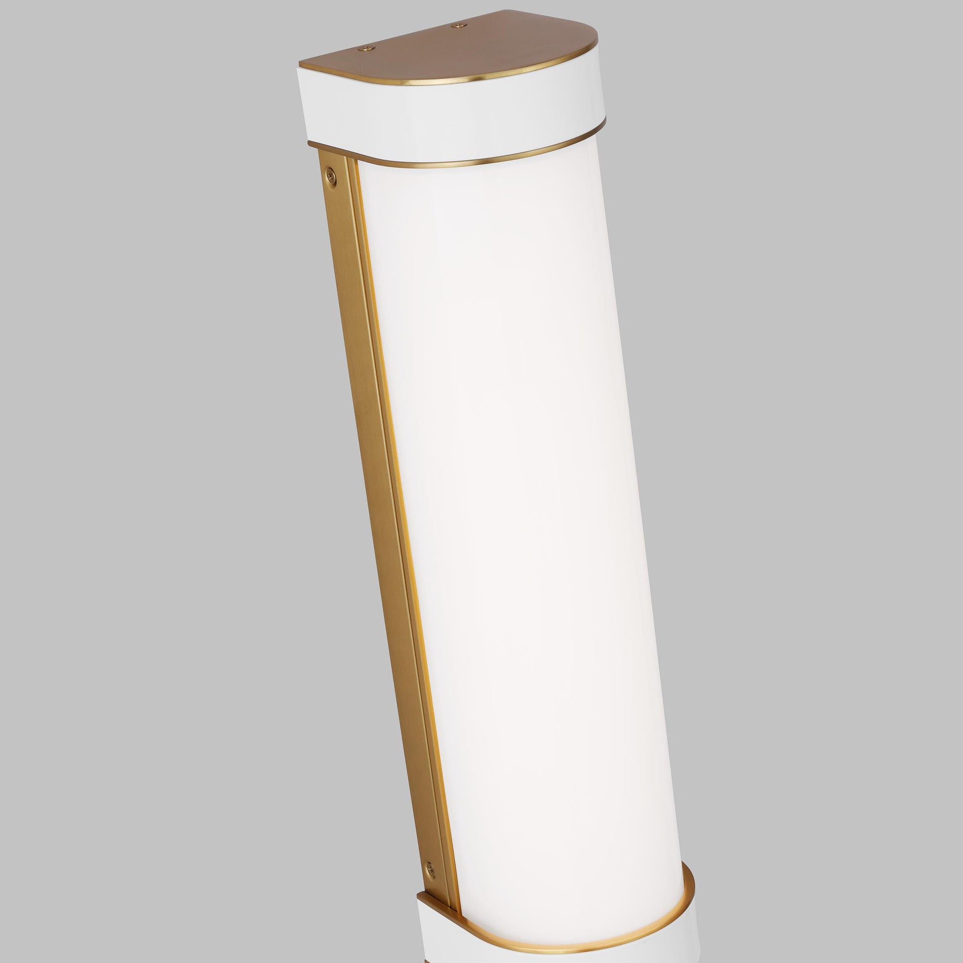 The Monroe vanity is inspired by graphic enameled metal jewelry and decorative accessories from kate spade with a nod to late 50s atomic era colorful designs. Monroe exhibits clean lighting profiles and dressed them up with painted sections and metal accents. Available in a Burnished Brass and Polished Nickel finish.