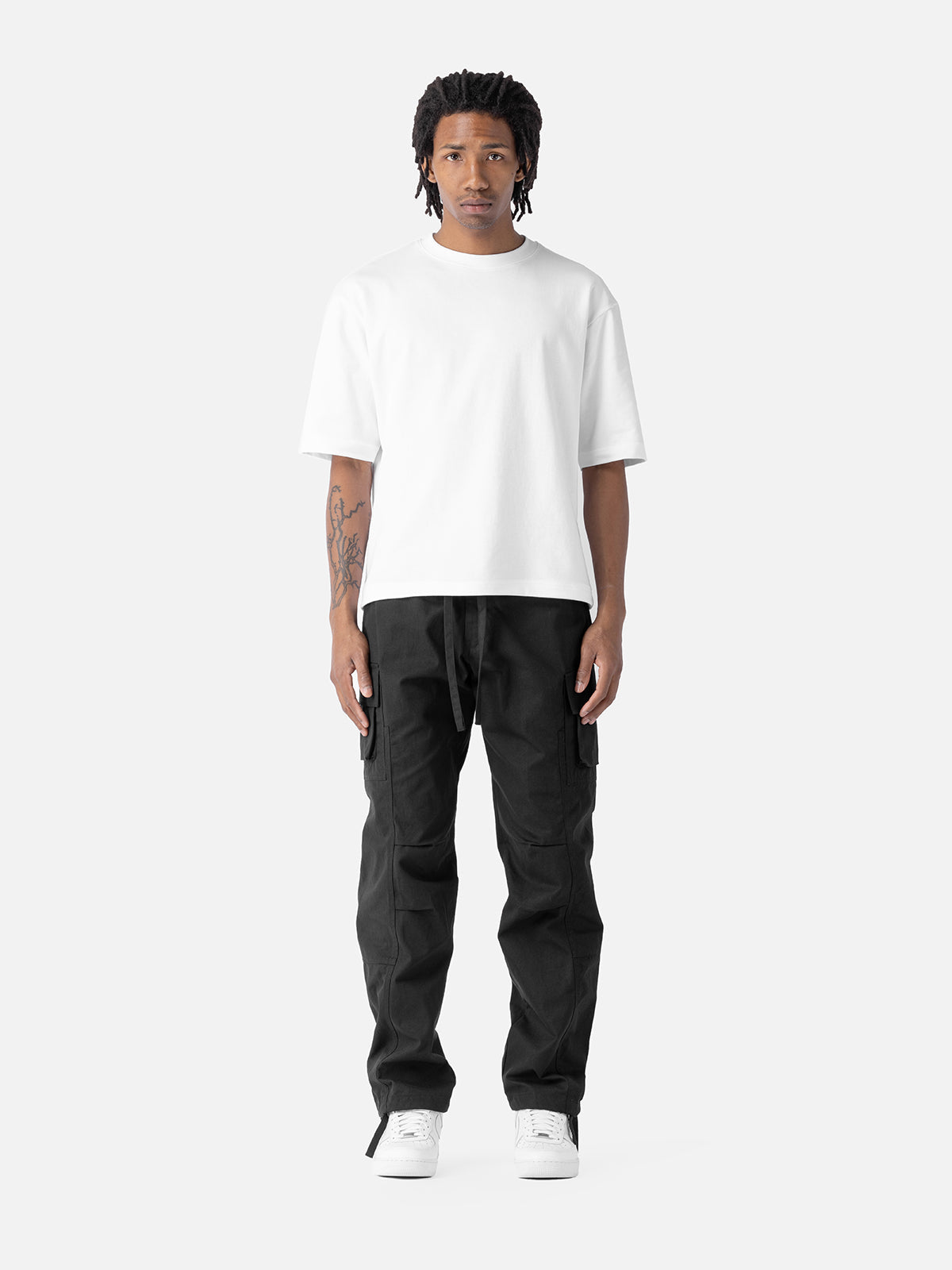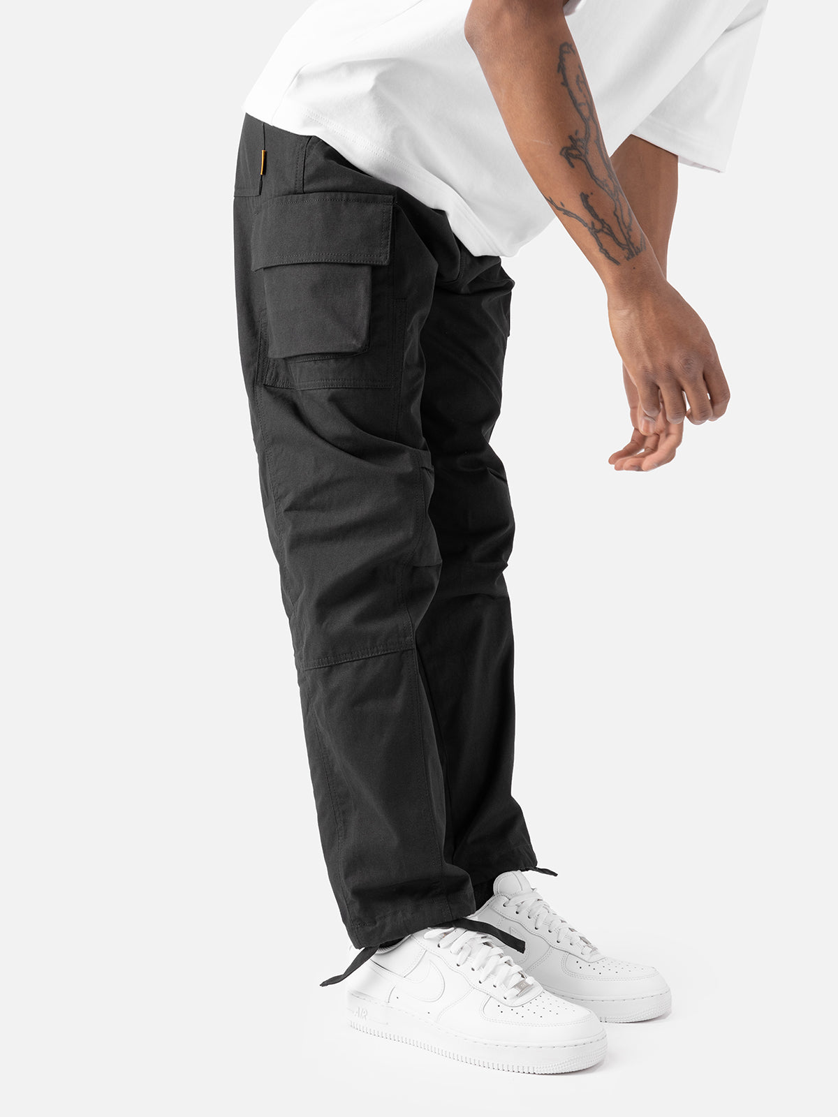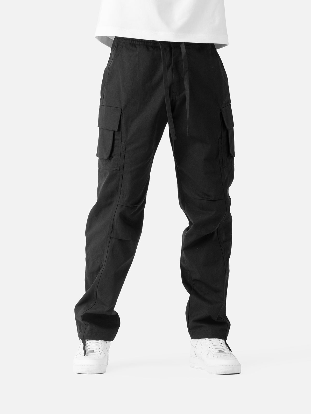 Crafted from cotton-made twill, the N36 Cargo features patch pockets with flaps on the side seam, elastic waistband with fabric stripe, and webbing tape at the leg opening.