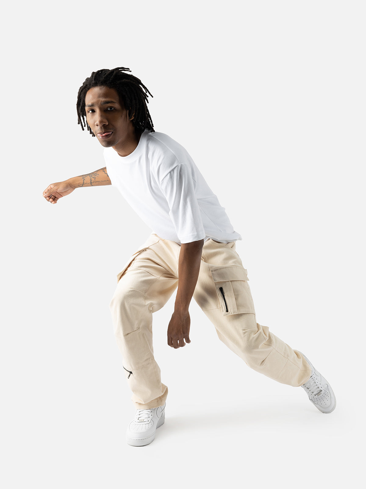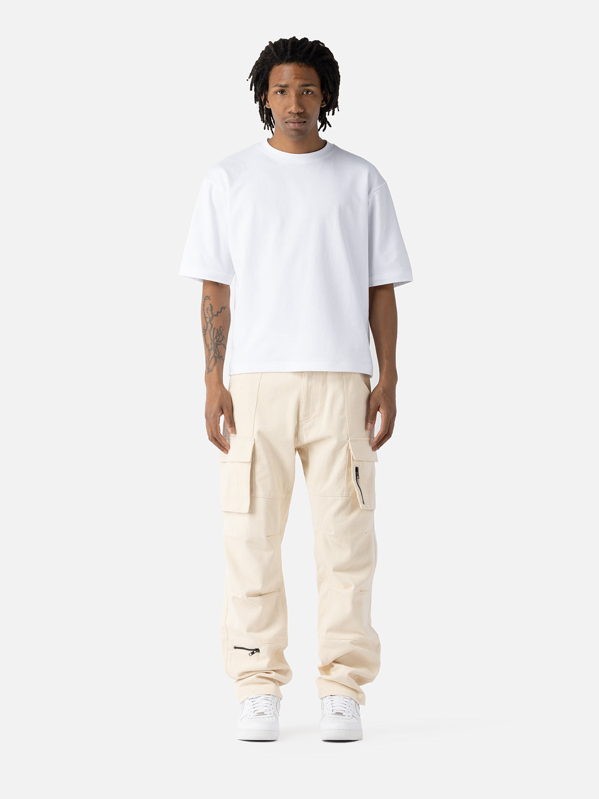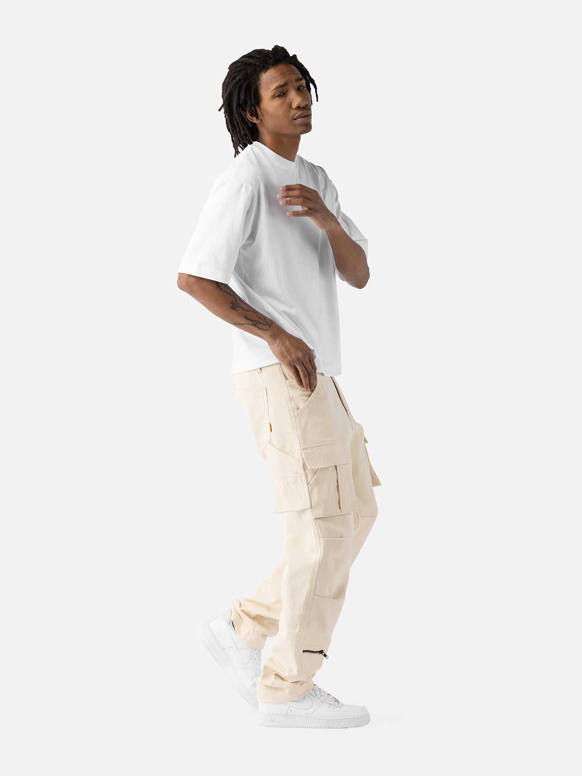 Crafted from heavyweight cotton-made twill, the N40 Cargo features a slash pocket with flap on the thigh, a tool bag at the back, a zipper pocket at the calf, a patch pocket at the back, and a hammer hook at the back.