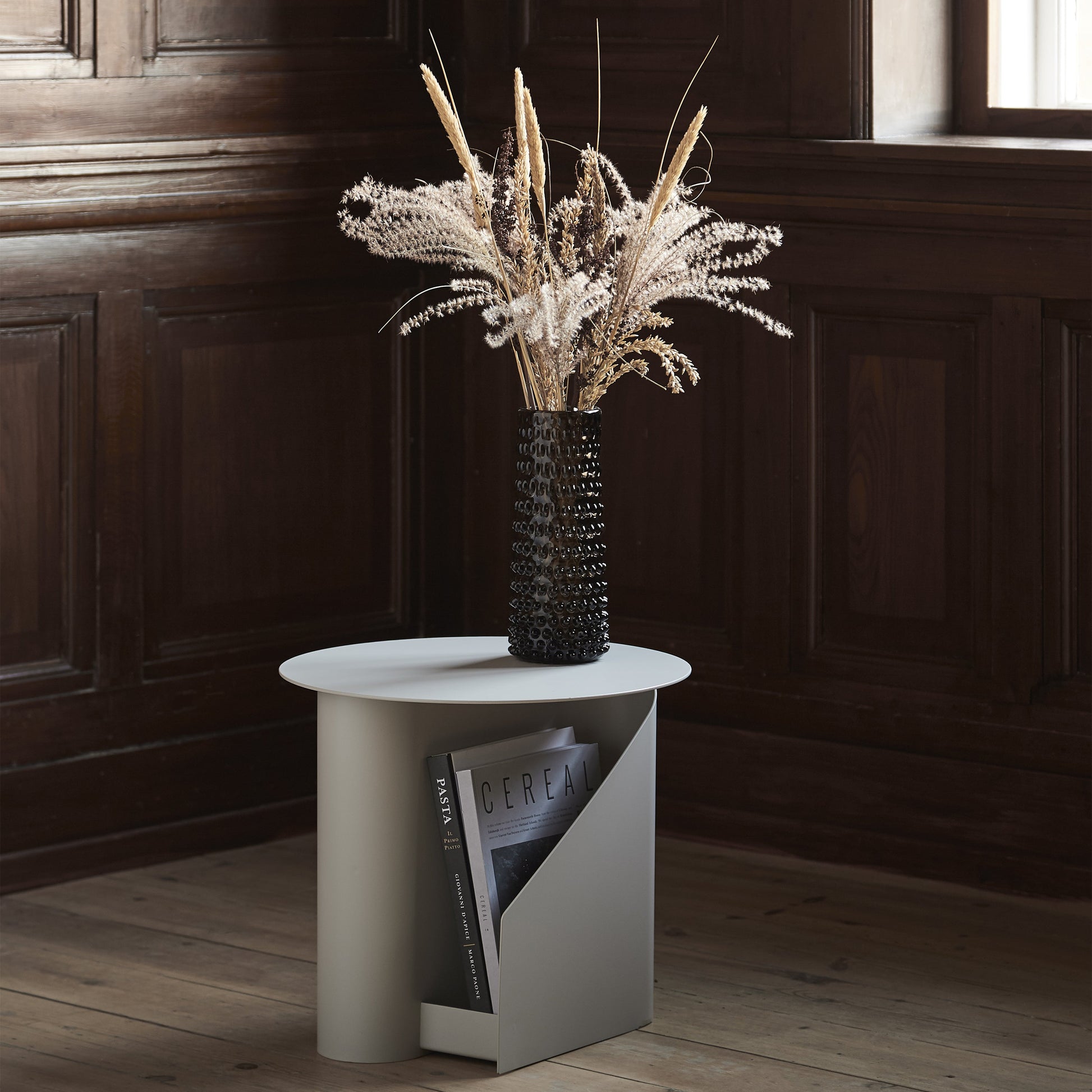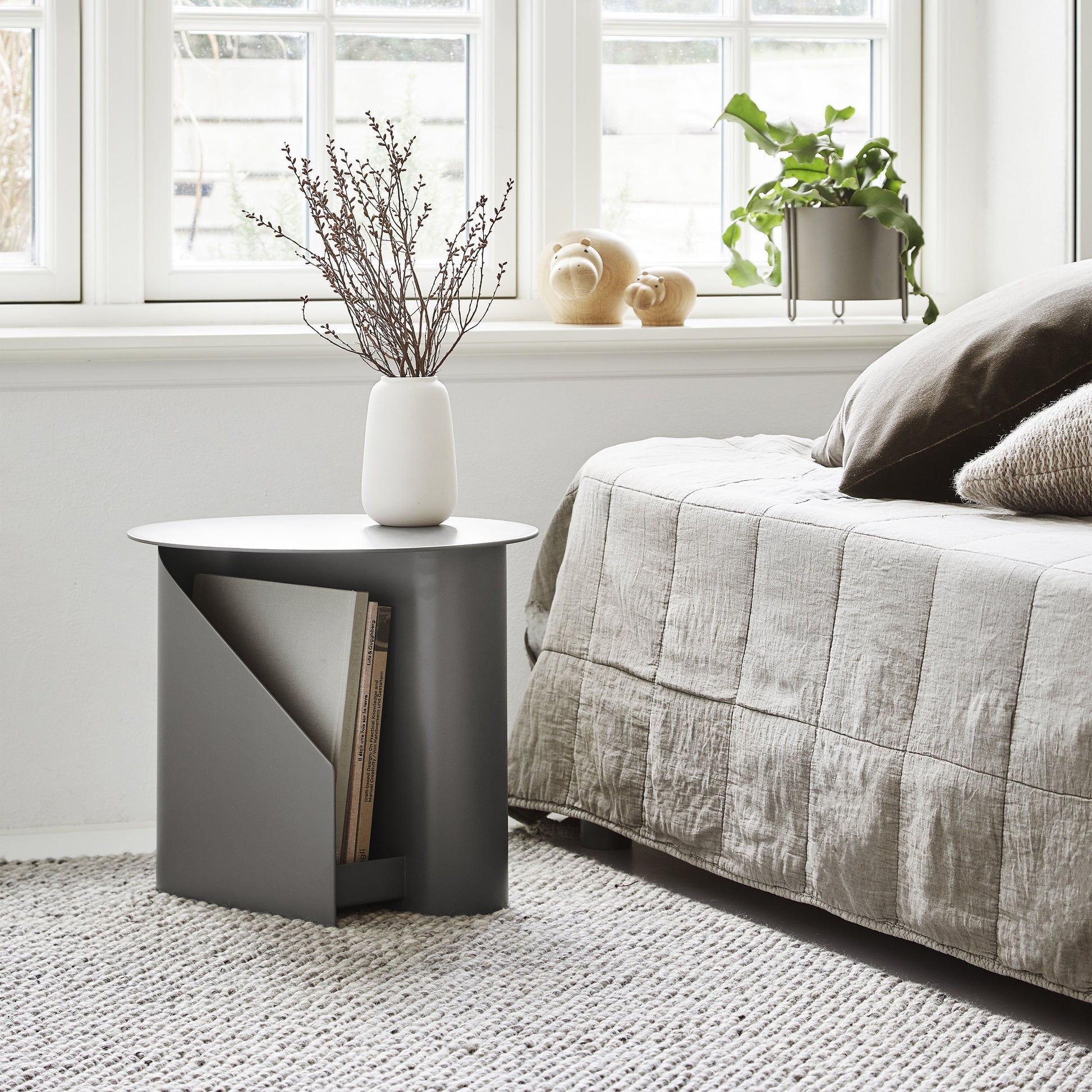 The Sentrum side table follows the principle of simplicity as it has been stripped from all unnecessary elements. What is left is a strong base and geometrical expression with pure functionalities. The S-shaped construction makes the center of attention and creates two spaces for storage on both sides to enhance the usability of the side table - ideal for magazines and books.