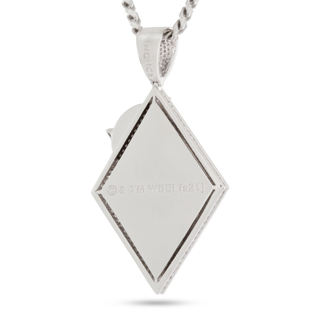 King Ice's official Space Jam jewelry line collab features the entire lineup of diamond-shaped character pendants. Each character is embossed, polished, and pops against an iced background in a two-layer design that maintains a minimal look while retaining all the details of the character. Porky Pig is presented in full detail with an oversized design and an iced bail.