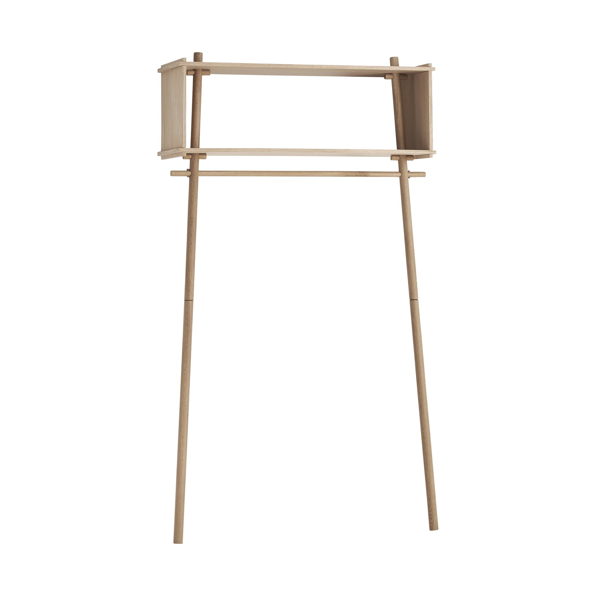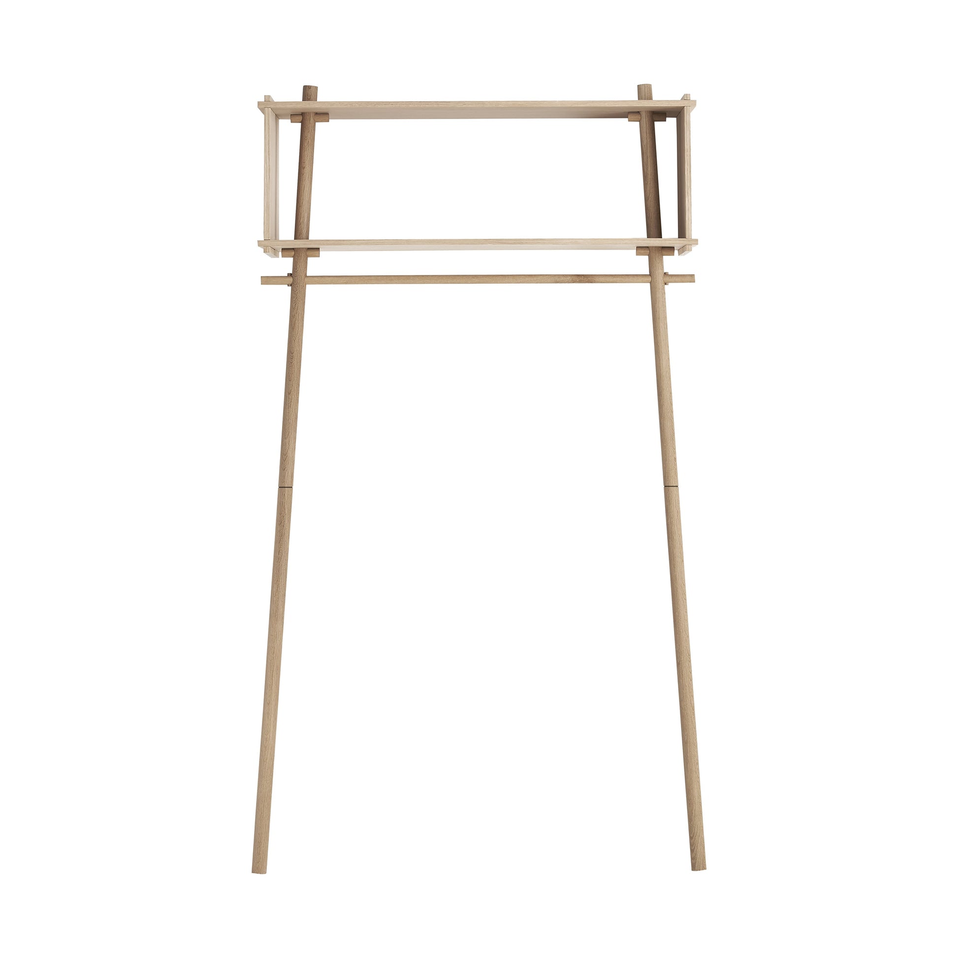 Töjbox is a simplistic and functional wardrobe made of oak. The design is ideal for the entrance, bedroom or walk-in closet. Use the clothes rack to hang your shirts and jackets and store your every day belongings or favorite decorations in the box, while the angled legs leave space on the floor for shoes and bags.