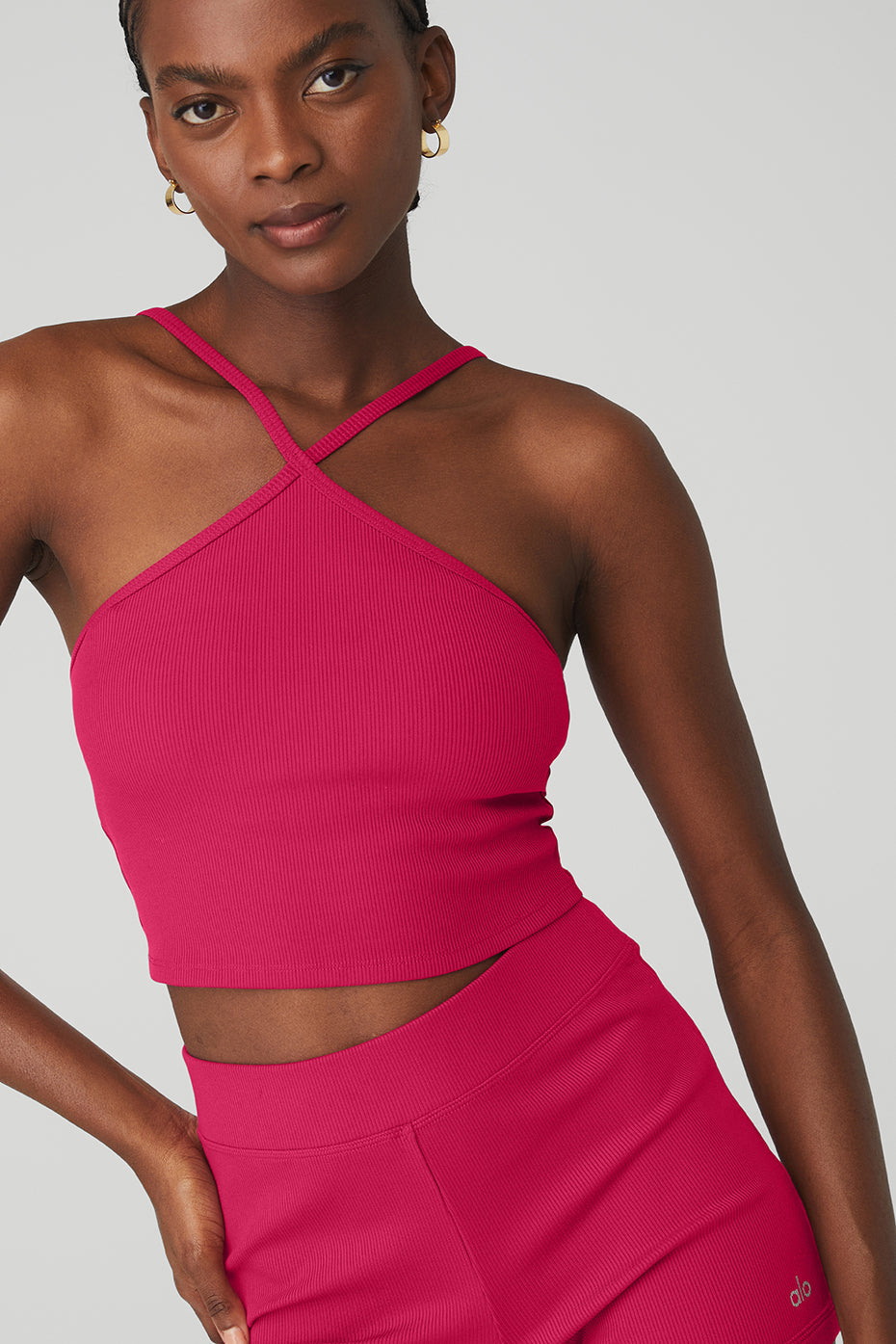 Goddess Ribbed Cross Crop Top - Magenta Crush
