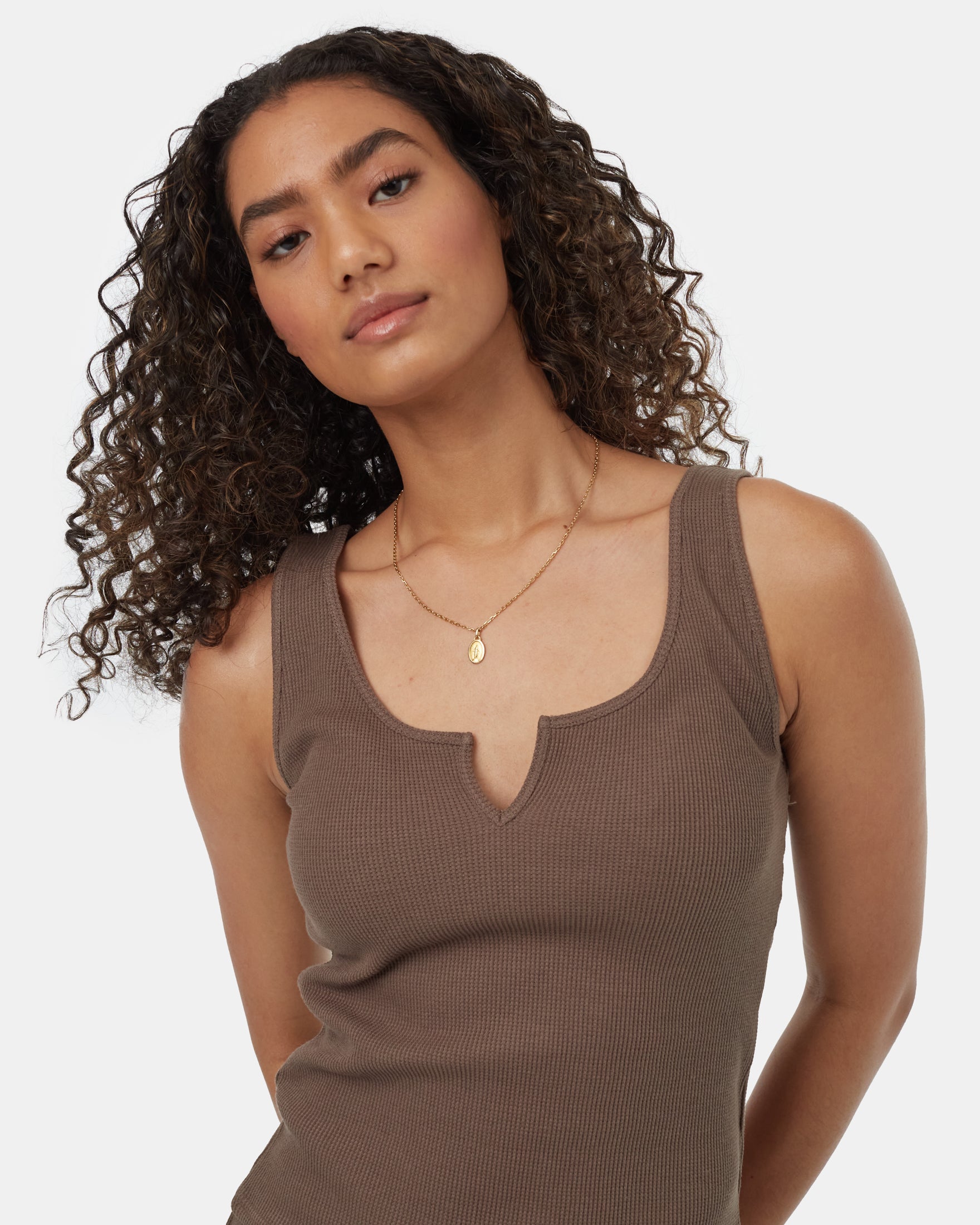 Flattering silhouette, thoughtful detailing, lightweight materials — what doesn't the TreeWaffle Notch Tank do? This style was ethically made using earth-friendly fibres.