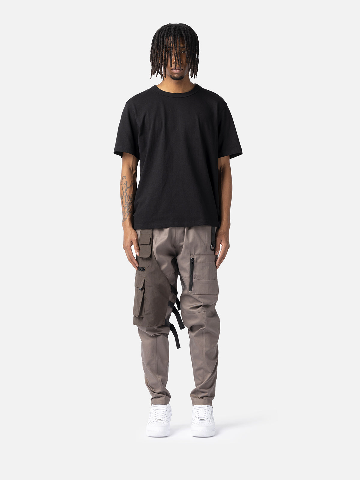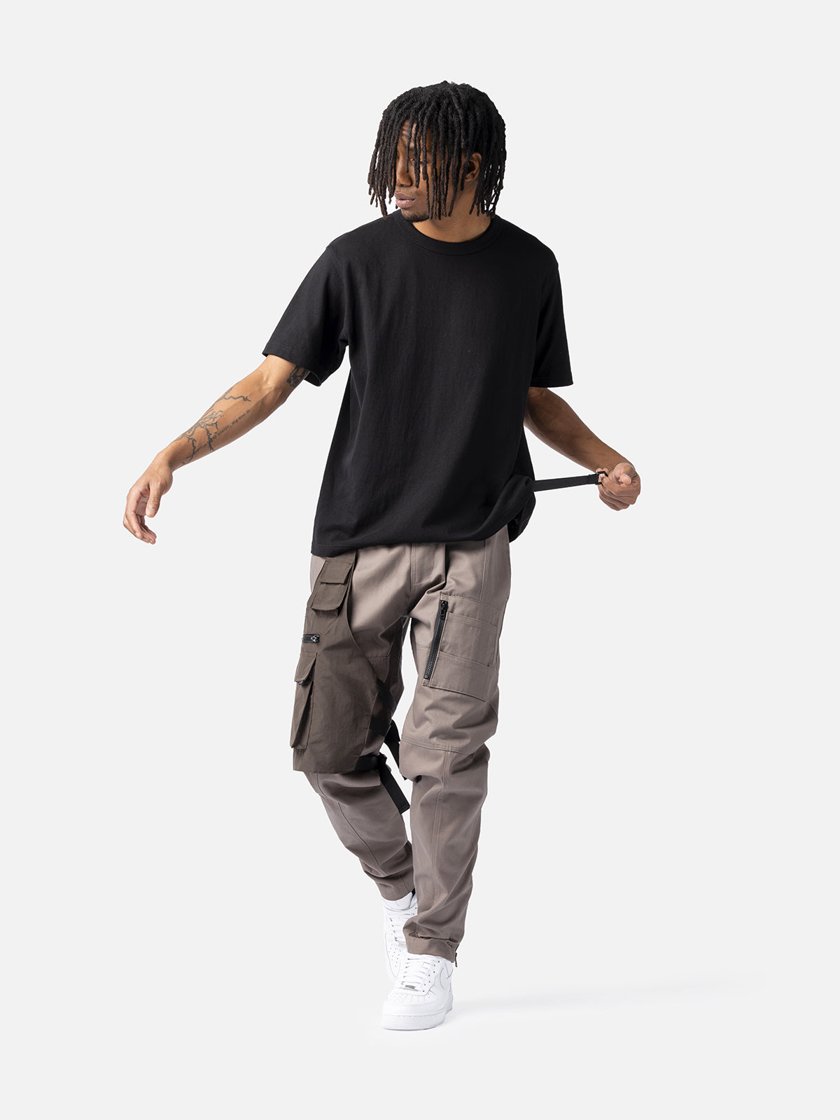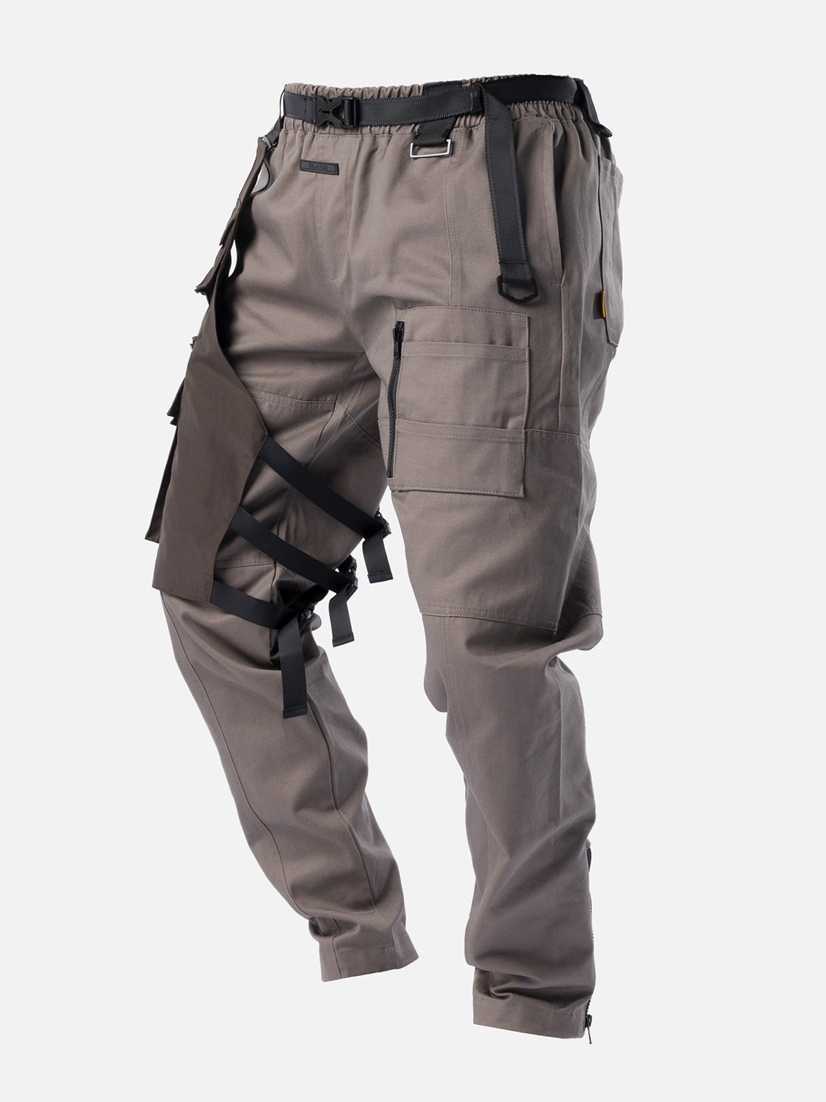 Crafted from cotton-made twill, the X5 Cargo features a zipped front pocket, detachable nylon pocket on the right, an elastic waistband with belt loops and belt, and zipper closure at the leg openings.