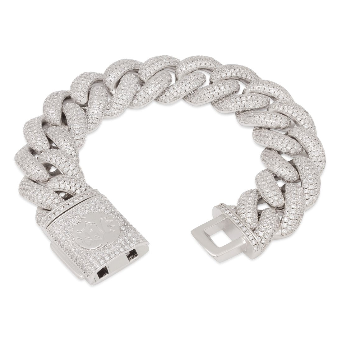 An Iced take on our classic Miami Cuban Bracelet. Stones line the face of each solid-back link and bracelet each bracelet has a custom Iced Box Clasp with an official King Ice Stamp.