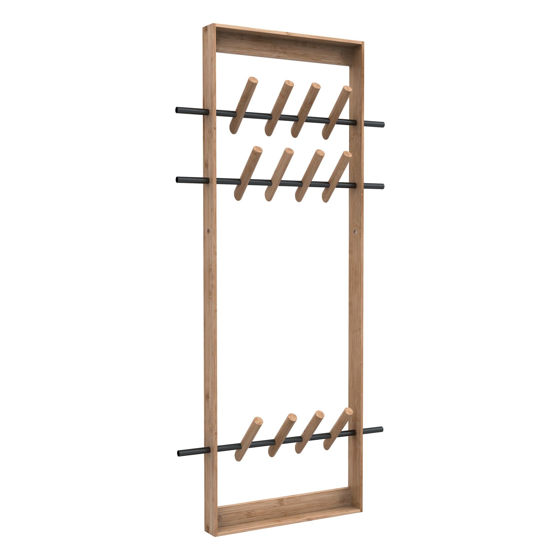 The frame serves as mounting system where the coat hooks mounted on three metal bars can be adjusted both sideways and in height for an aesthetic storage solution.