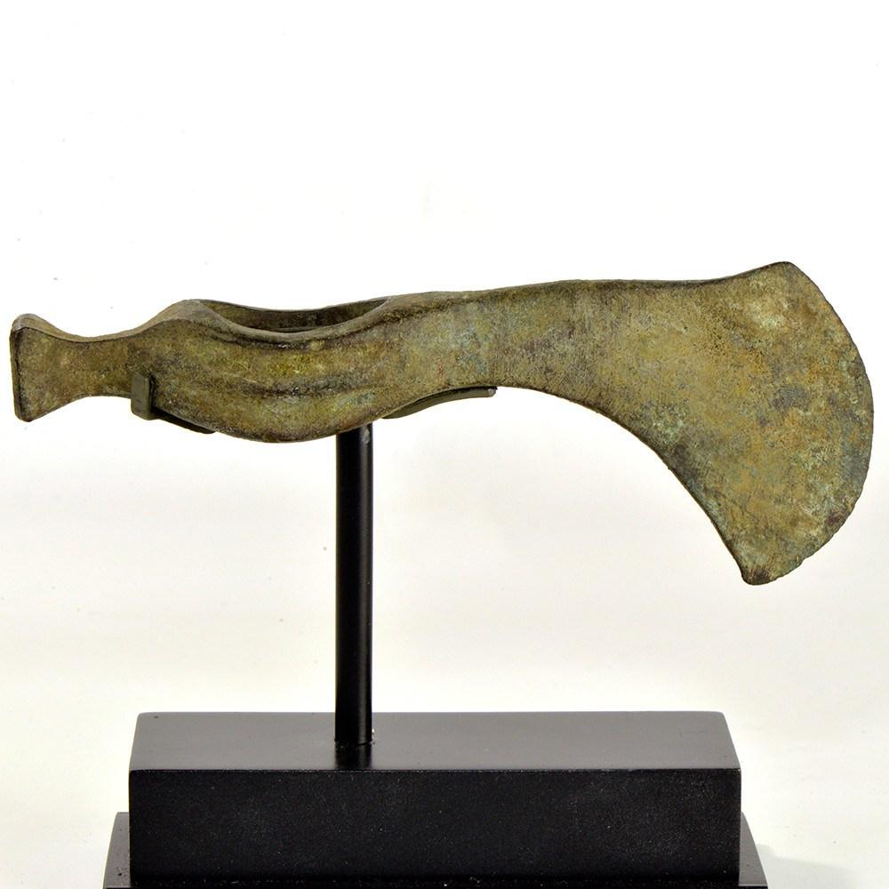 Koban culture is a late Bronze Age and Iron Age culture of the northern and central Caucasus. It is preceded by the Colchian culture of the western Caucasus and the Kharachoi culture further east. It is named after the village of Koban, Northern Ossetia, wherein 1869 battle-axes, daggers, decorative items and other objects were discovered in a kurgan. Later, further sites were uncovered in the central Caucasus. This rare example features an elliptical shaft-hole and crescentic blade and hammer at right angle.