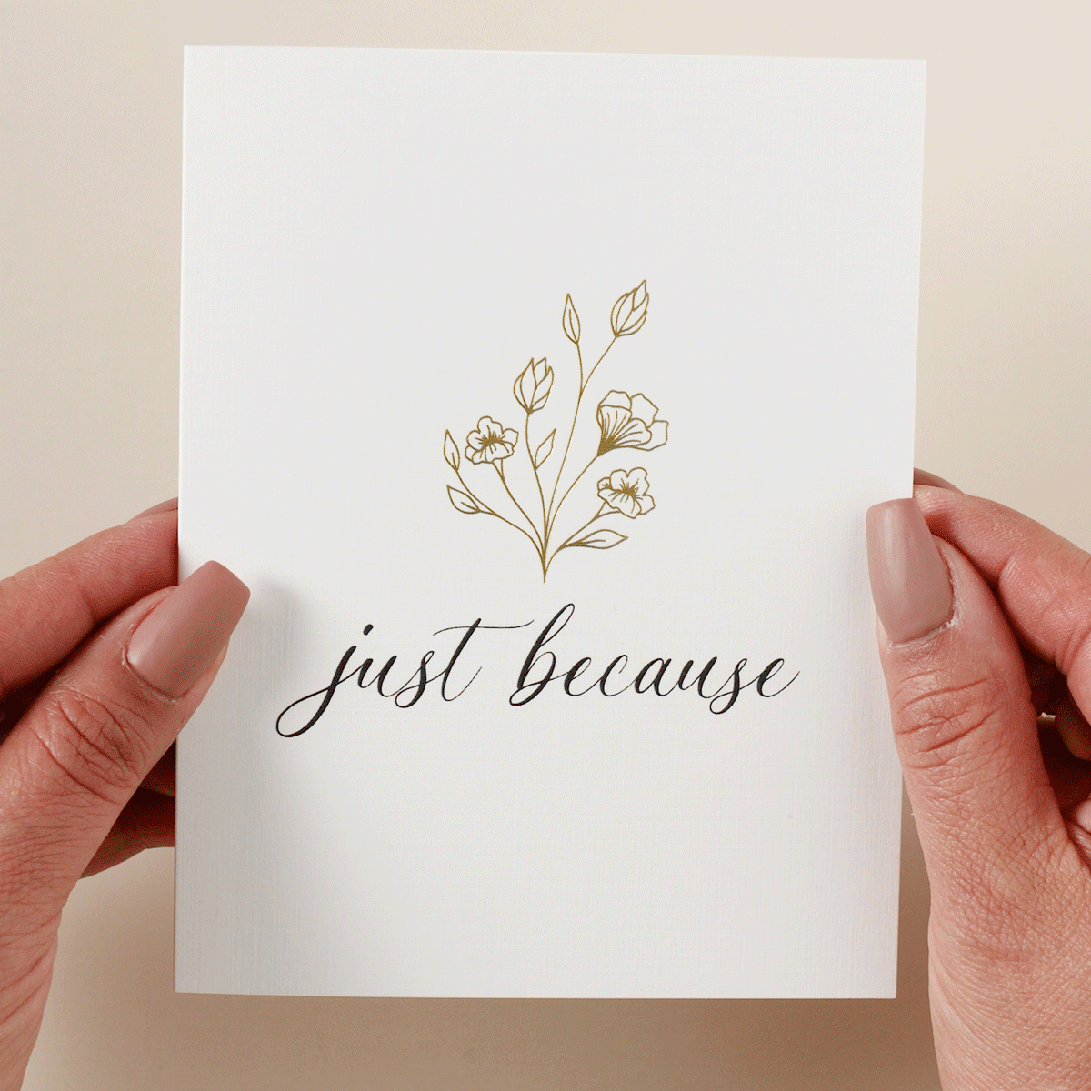 Indulge in celebrating life's precious moments with Foil Pressed Greeting Cards. Evelyn details elegant gold foil florals accompanied by a thoughtfully scripted phrase.