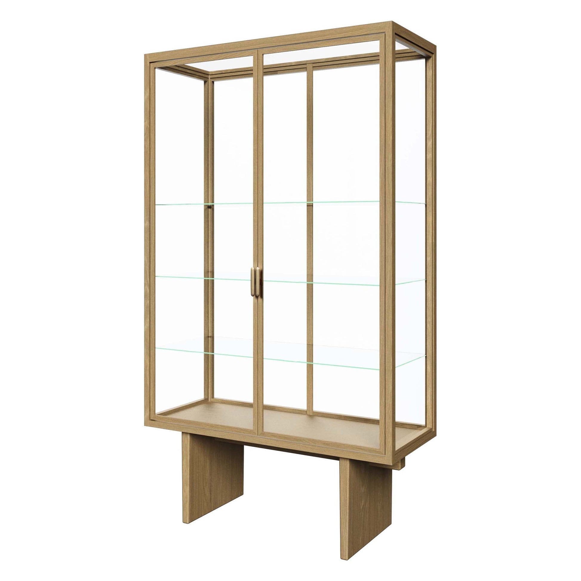 The Private Collection is a dedicated exercise in clean lines, symmetry and tonal restraint – calm and composed, but undeniably generous in its expression. The visual simplicity and careful balance of dimensions and materials enable each piece to feature in any room of the home and to fit seamlessly into a range of different interior styles. The Private Vitrine is a statement display cabinet for the bedroom, lounge or kitchen – and would also work well in a hotel or spa lobby where a touch of personality is required. Its brown/black-stained or light-stained oak veneer frame encases a tall glass case with three shelves, providing the transparency to store and display books, tableware, glassware, or precious ornaments, and an opportunity to weave personal narratives into a space.
