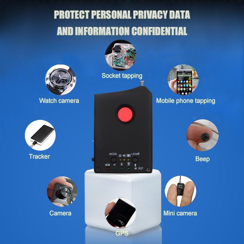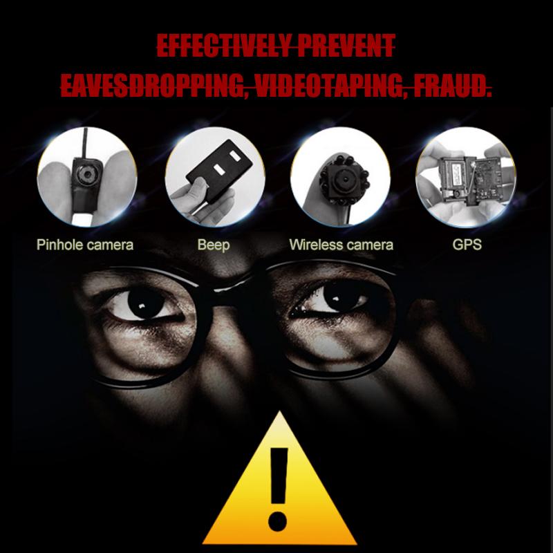 This detector can detect and locate any wired, wireless hidden camera and RF device with working frequency between 1MHz-6.5 GHz, including GSM, VHF, UHF bugs, trackers. It can also detect and locate spy camera lens through laser scanning. Can effectively prevent eavesdropping, videotaping, fraud, protect personal privacy data and information confidential.