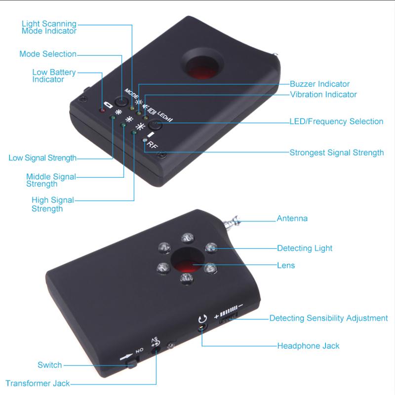 • 1 x Anti-Spy Hidden Camera Signal Detector.