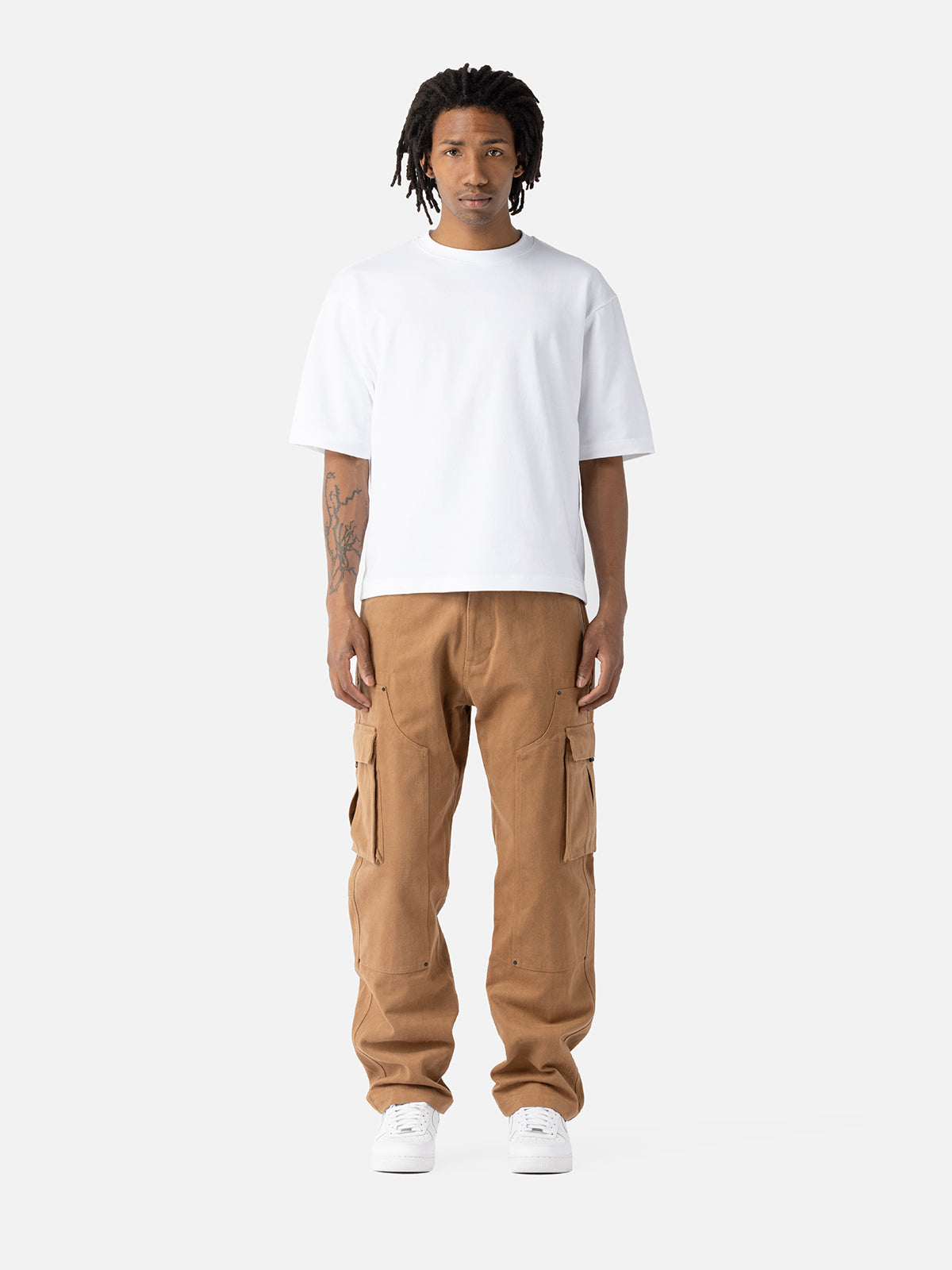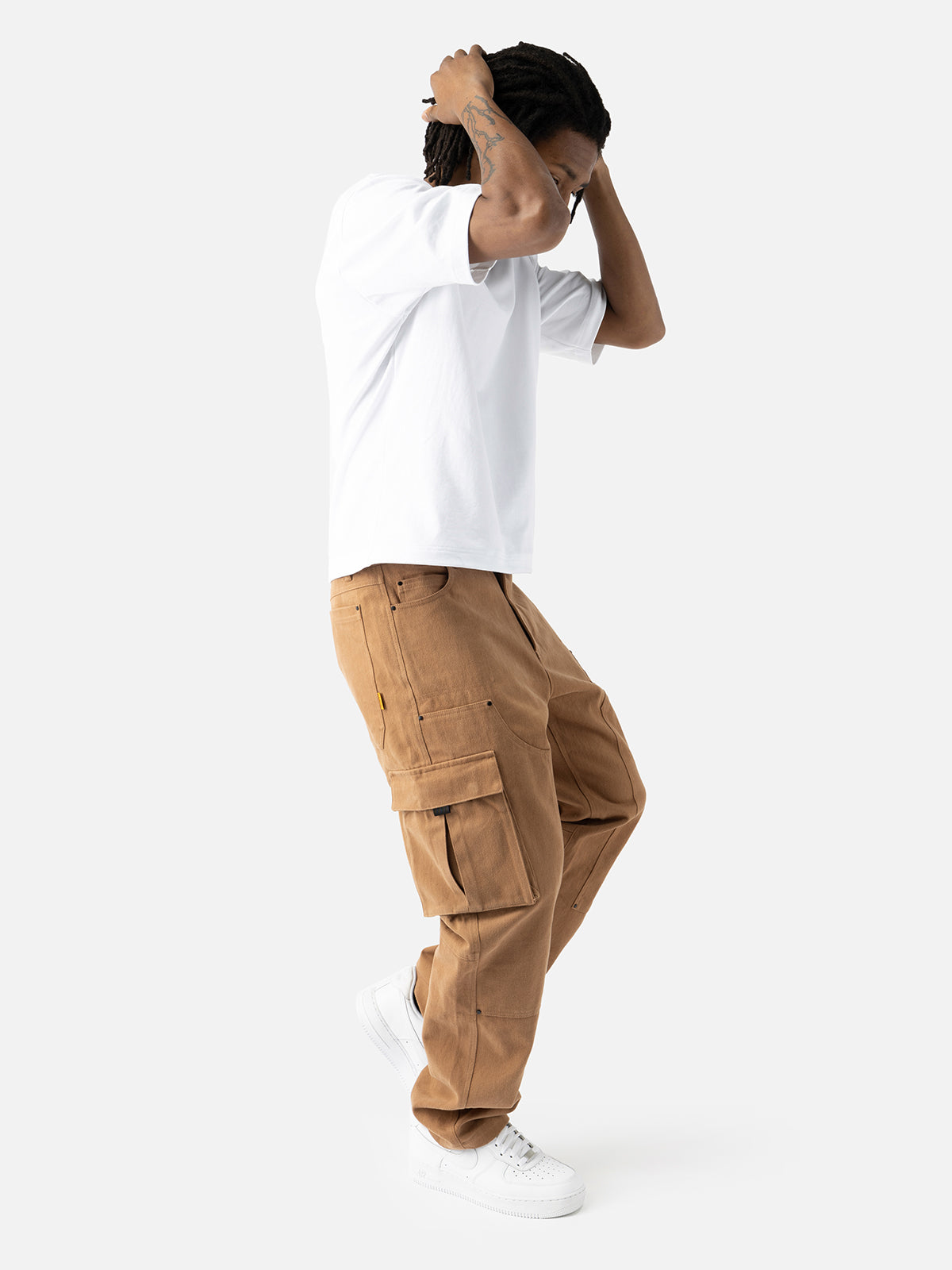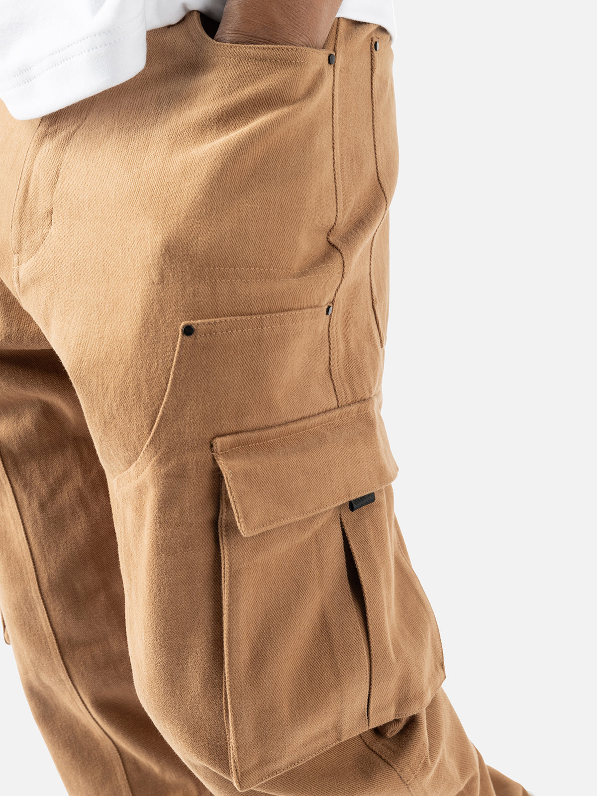 Crafted from heavyweight cotton-made twill, the N37 Cargo features an extra layer from thigh to calf, patch pockets with flaps on the side seam, a patch pocket at the back, and a coins bag on the right curved inset pocket.