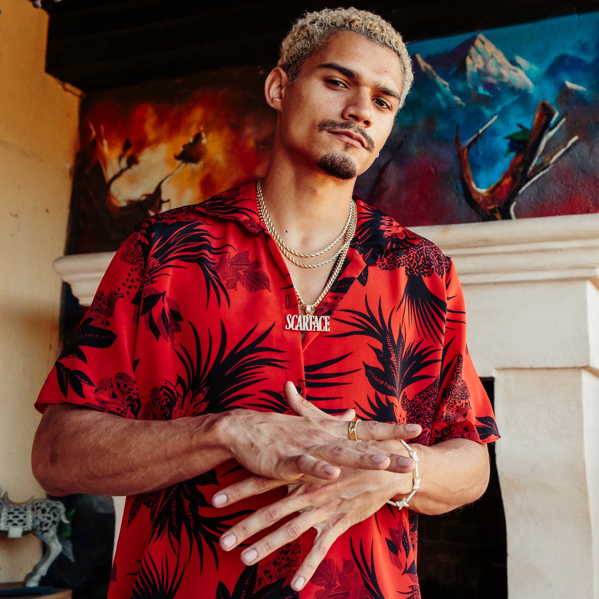 This clean letter pendant showcases the iconic Scarface type logo, covered in hundreds of handset stones from top to bottom.