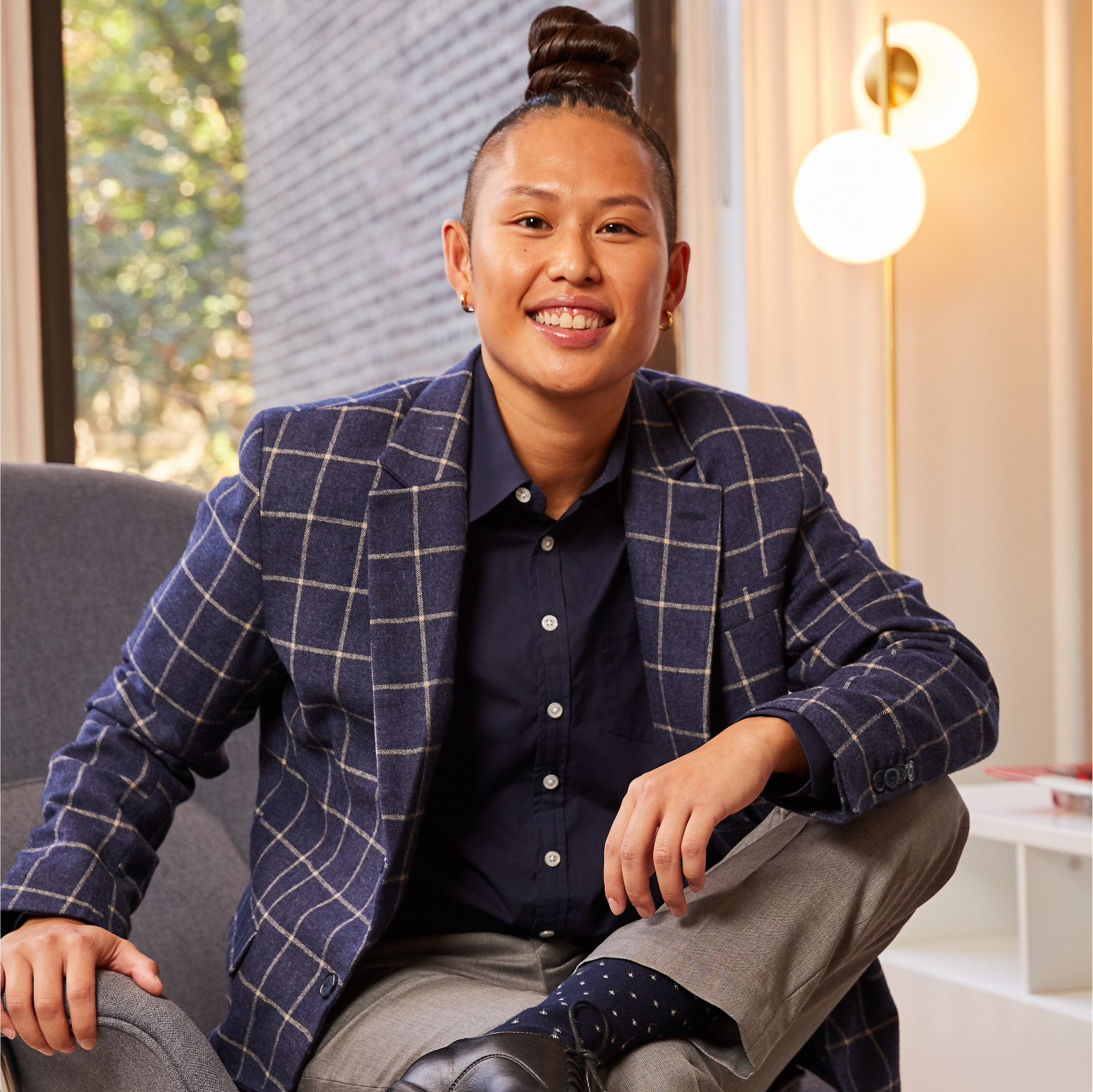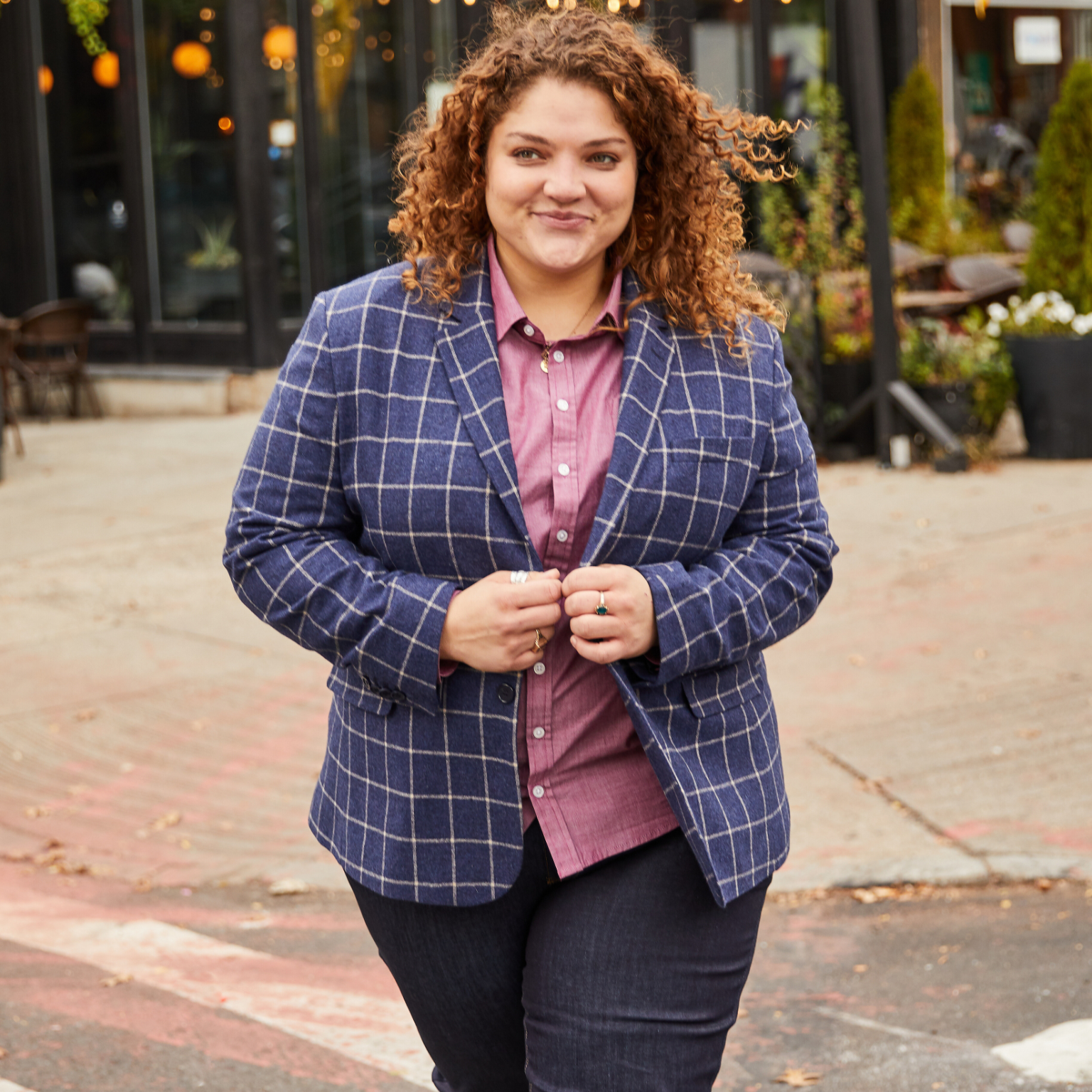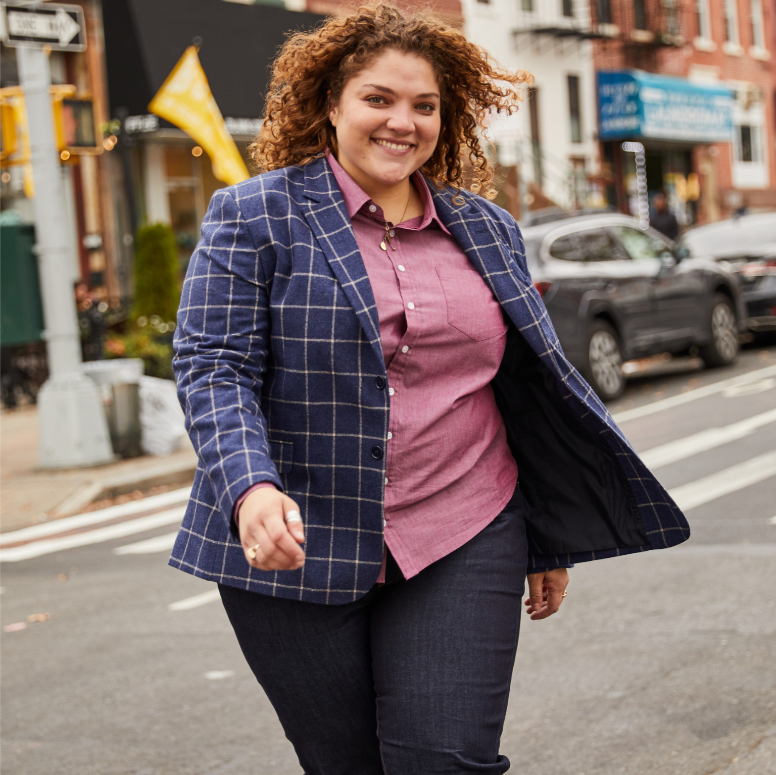 Empower your identity with the show-stopping Windowpane blazer. Its eye-catching brushed indigo color perfectly pairs with the Joni jeans and wide range of dress shirts.