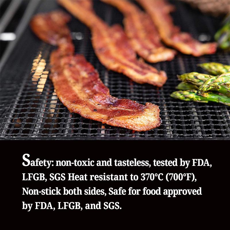 - These grill toppers are made from premium heat resistant PTFE-Fiberglass coating and contain no PFOA, silicone, or other harmful chemicals. They can withstand temperatures up to 700 degrees Fahrenheit and will not burn.