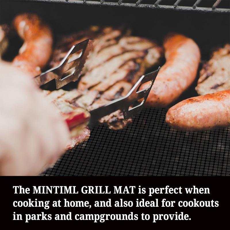 The MINTIML GRILL MAT is perfect when cooking at home, and also ideal for cookouts in parks and campgrounds to provide an instantly clean surface to cook on. Instead of BBQ sauce causing food to stick and become mangled or burnt, it will flip over easily to remain intact, and cook to perfection.