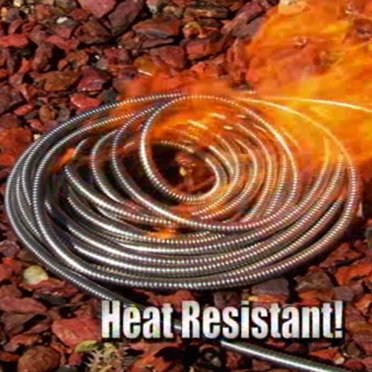 The stainless steel metal hose is protected by a flexible, puncture proof, stainless steel housing that makes it virtually indestructible. Ordinary hose fittings are easily crushed but our product's fittings remain solid no matter the pressure.