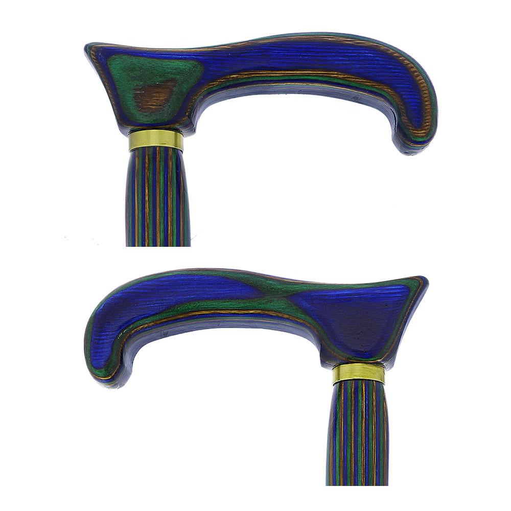 Scratch and Dent Blue Green and Brown Colortone Classic Rope Twist Derby Handle Walking Cane with Laminate Birchwood v1596