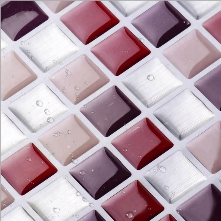 3D Mosaic Tile Self-adhesive Stickers has the 3D effect and feel of shiny glass tile. It can be applied on the curved surface and angled surface. And you can cut it with scissors or cutter for your preferred shape so that you can use it not only the wall.