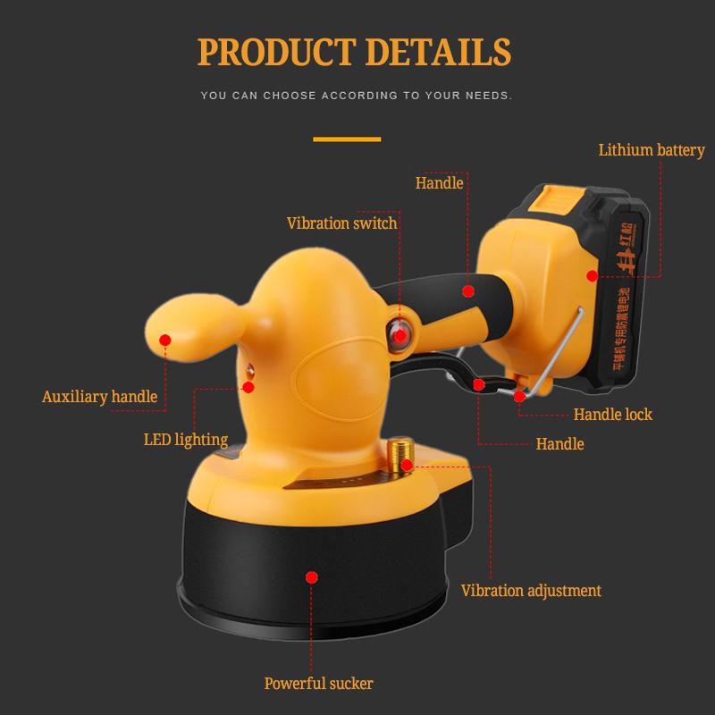 - Strong suction cup, can absorb 30kg, can adjust the vibration frequency according to the size of the brick, can correct the position of the brick and improve the efficiency.
