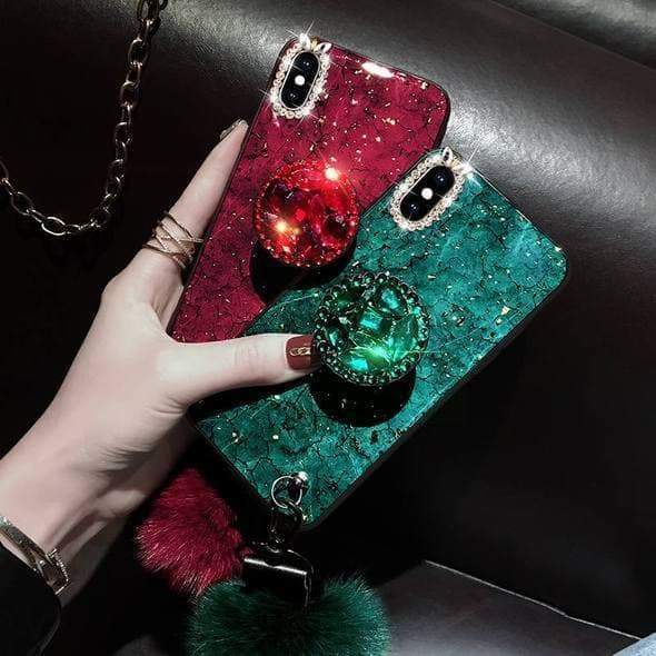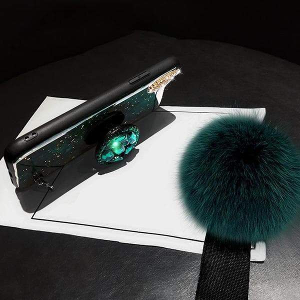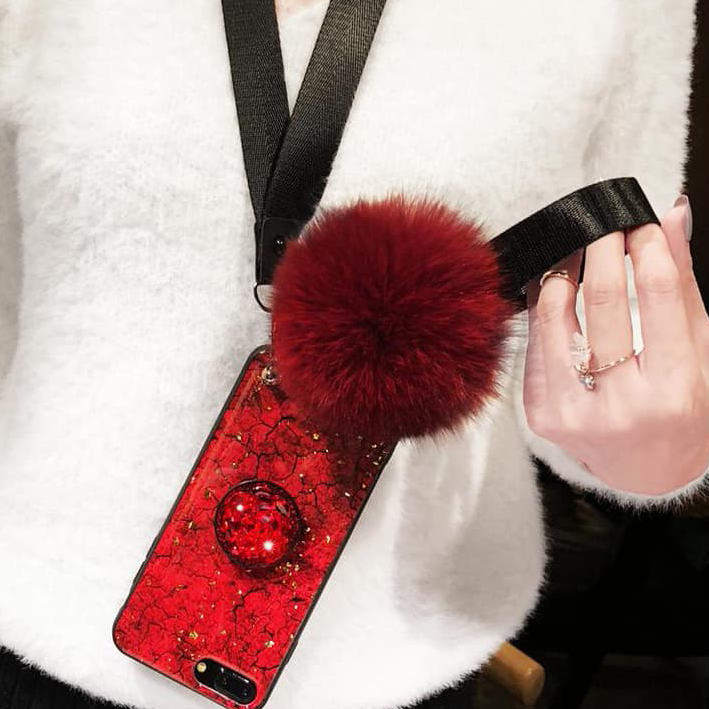 - क्रिस्टल ब्रेसलेट डोरी और सॉफ्ट फाइबर फर बॉल के साथ फैशन नवीनतम iPhone मामला।