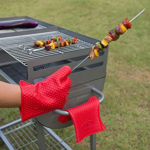अद्भुत नया सिलिकॉन दस्ताने जो सबसे गर्म नौकरियों के लिए काफी कठिन है। अब आप पास्ता को सुरक्षित रूप से ड्रेन कर सकते हैं, सिज़लिंग कैसरोल्स को स्थानांतरित कर सकते हैं, पोर्क को खींचा जा सकता है, बेकन को मोड़ सकता है, ओवन रैक को स्थानांतरित कर सकता है, एक टर्की उठा सकता है, या यहां तक कि ग्रिल पर फ्लिप बर्गर भी ले सकता है - सभी दस्ताने के साथ - कोई स्पैटुला या चिमटे की जरूरत नहीं है। रहस्य दस्ताने उठाए गए सिलिकॉन ग्रिपर्स में है जो सुरक्षित रूप से हाथों से गर्मी खींचता है। पांच-उंगली नॉन-स्लिप ग्रिप खाना पकाने और ग्रिलिंग को पहले से कहीं ज्यादा आसान बनाती है।