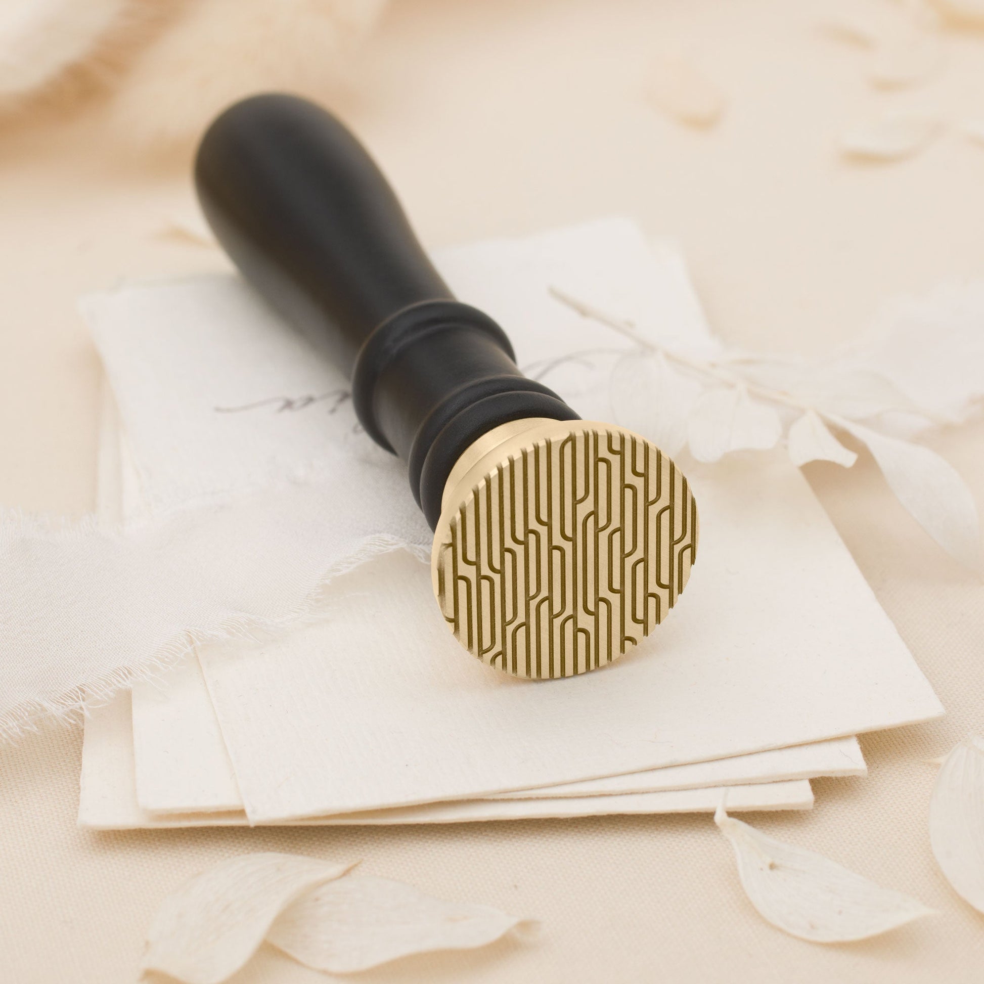 क्लासिक ब्लैक हैंडल के साथ दिखाया गया वैक्स स्टैम्प
