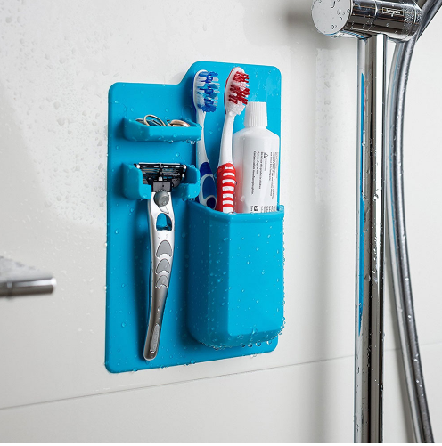 • छोटे बाथरूम वस्तुओं के लिए एक सिलिकॉन टॉयलेटरी आयोजक।