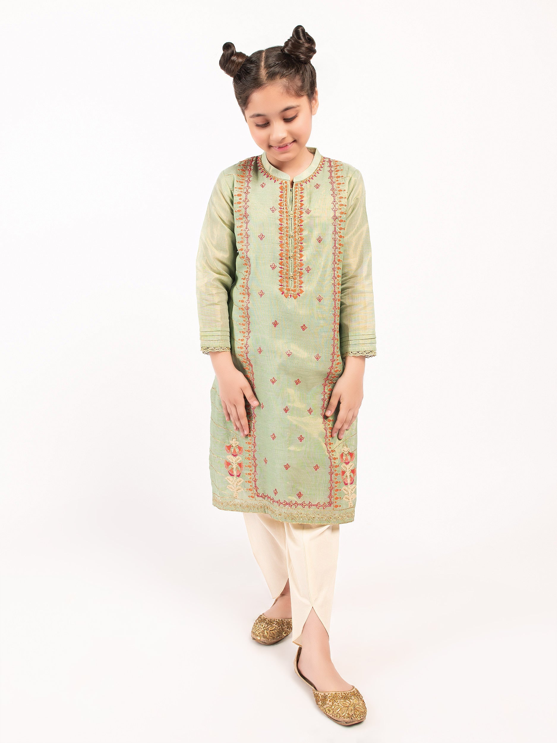- Ornamental beads detailing on placket