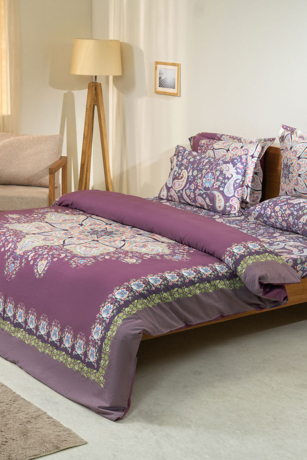 Glam up your space with this rich quilt cover with digitally printed paisleys forming a medallion on duvet cover.