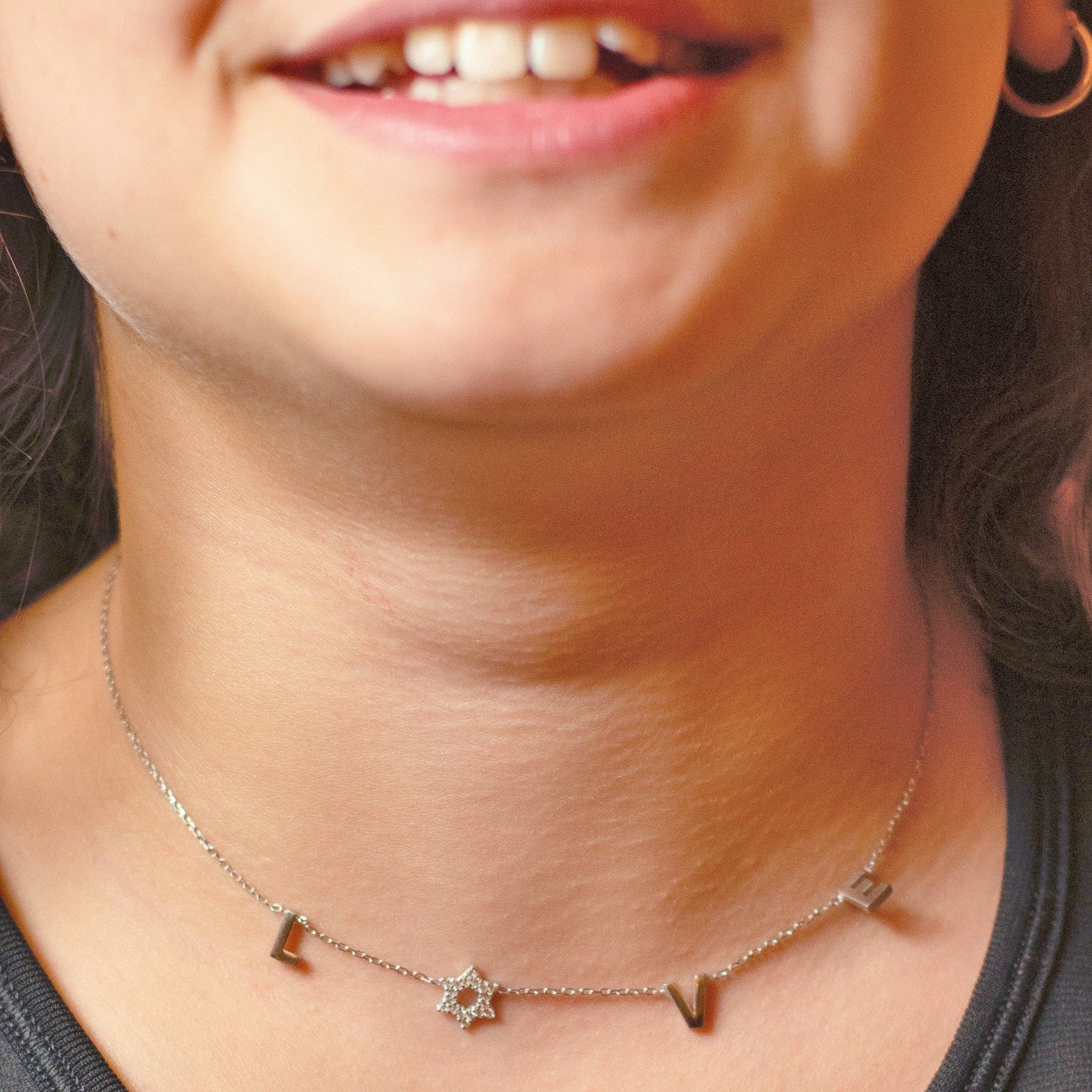 Star of David replaces the "o" of the LOVE necklace to show your fashionable faith-based love ❤️