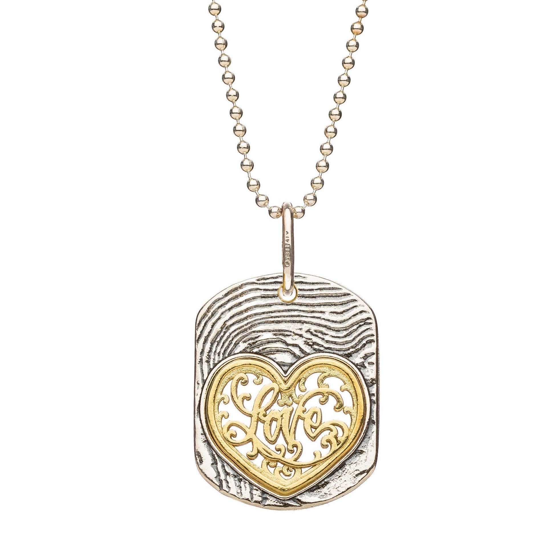 A declaration of love in a pure and simple form....with the word "love" in the center of the pendant. Surrounding the Love is an imprint of a fingerprint, making the charm very personal when you present your gift this holiday season, or for any occasion.